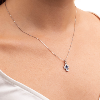 Collana Croce Zirconi Blu