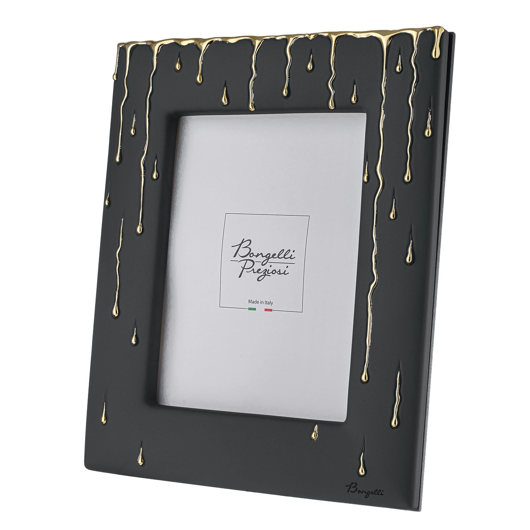 Cornice Portafoto della collezione Rugiada di Bongelli Preziosi, realizzata in marmorino con dettagli in oro.
