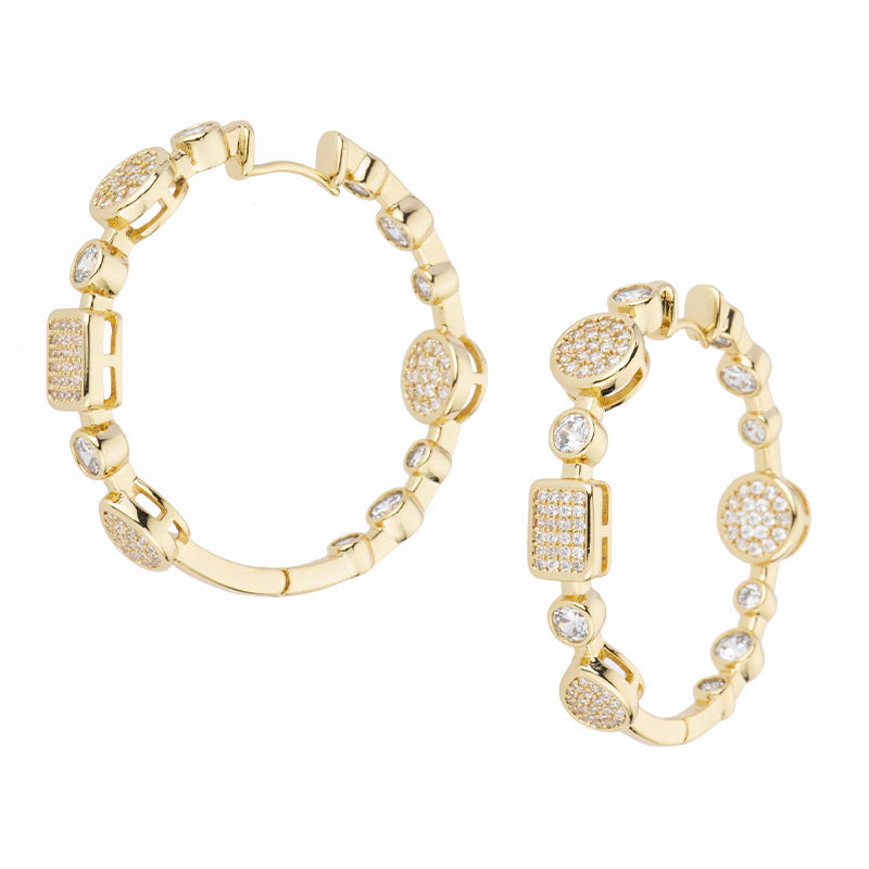 Orecchini Lumen Creola della collezione "Contemporary Jewels Classy" di Barbieri Creazioni, realizzati in ottone con finitura galvanica protettiva, impreziositi da pavè di zirconi dal taglio mix.