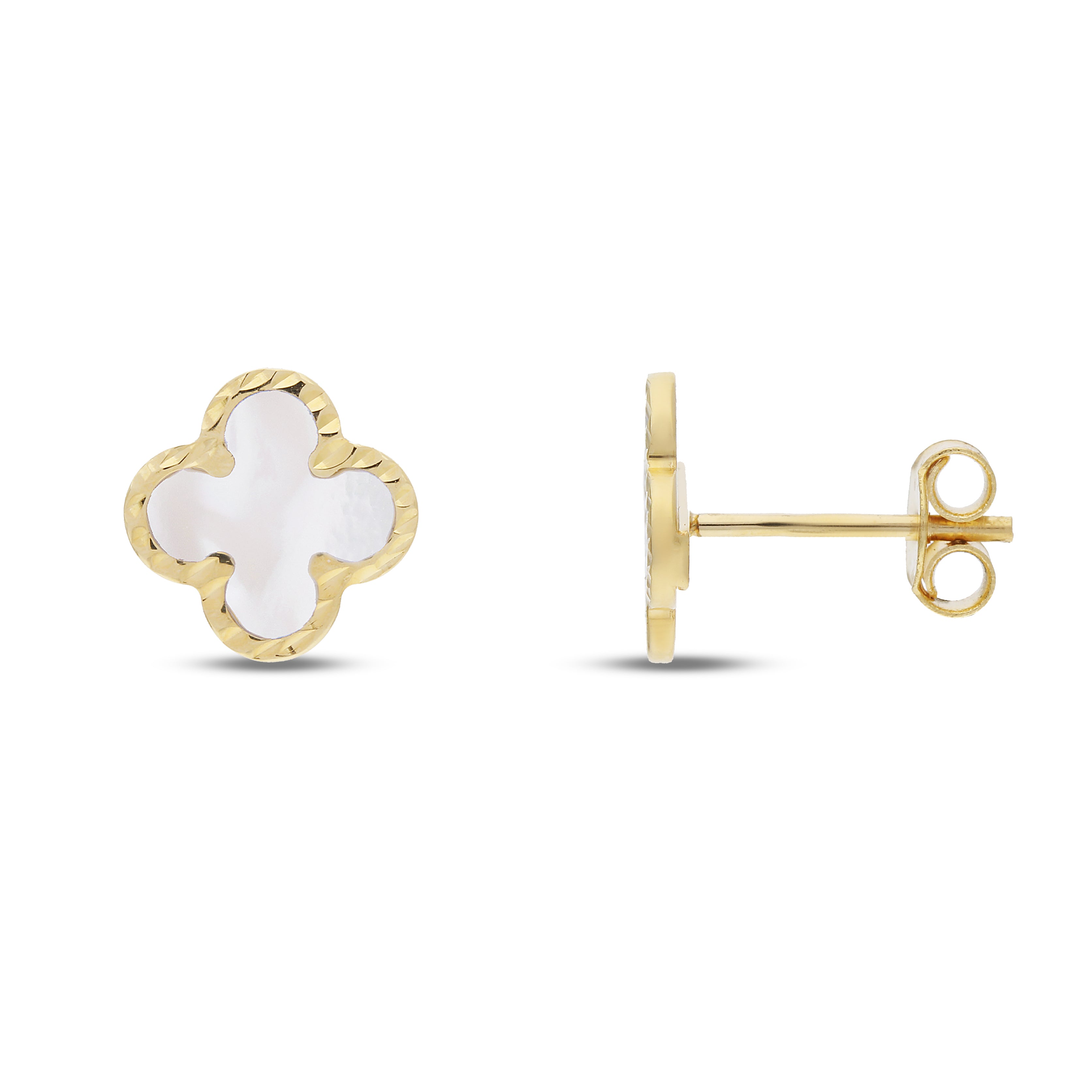 Orecchini quadrifoglio con madreperla della Collezione Prestigio Gioielli, realizzati in Oro Giallo 18kt.