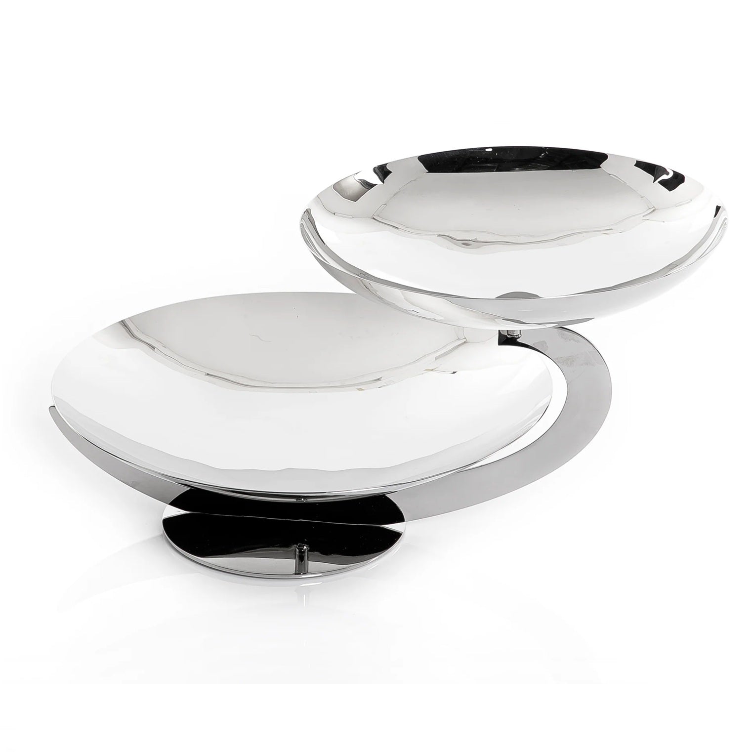Alzata a due piatti di Elleffe Design, realizzato in acciaio inox con finitura silver.