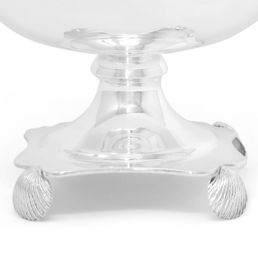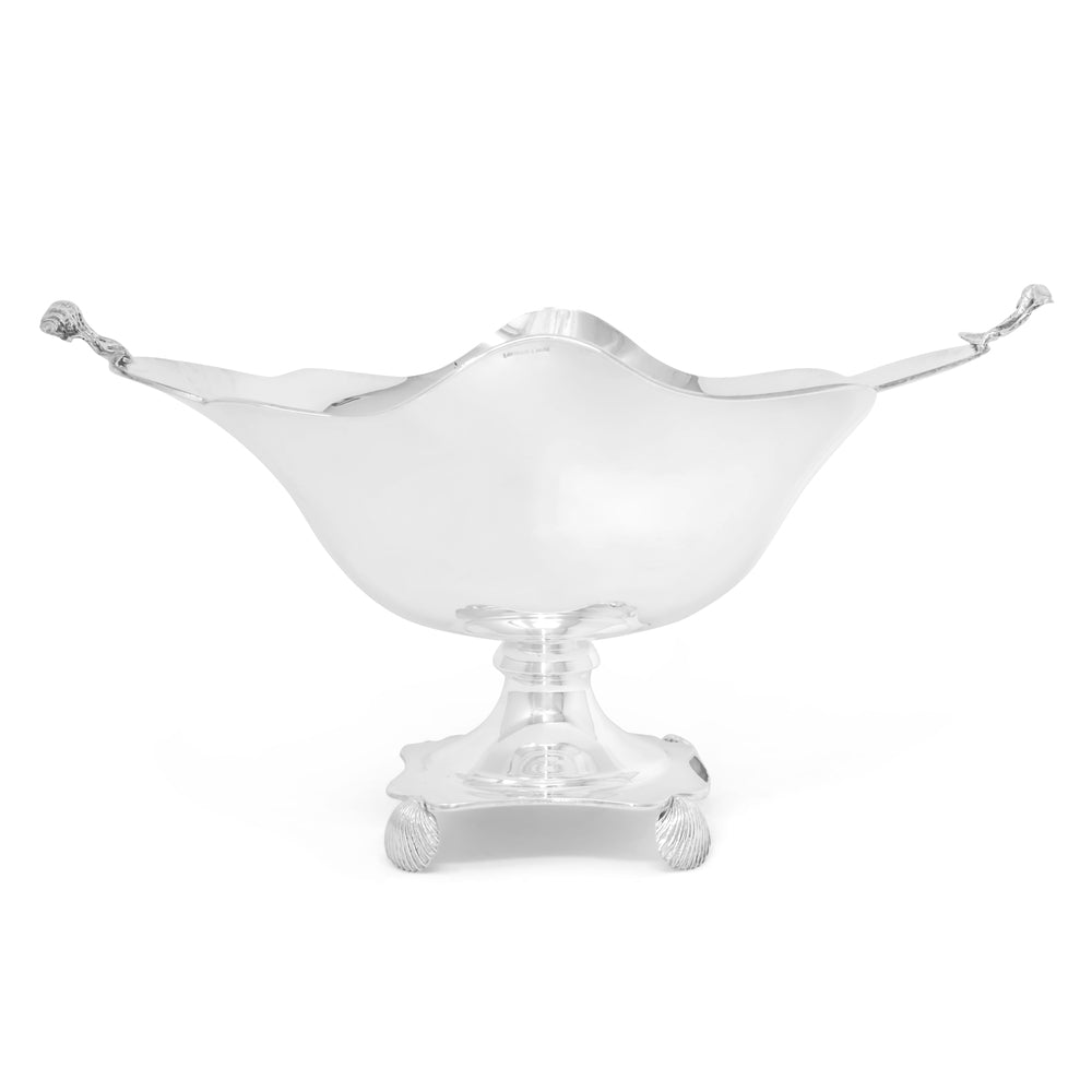 Alzata con piedini della collezione Prestigio Argenti, realizzato in Argento 800 con decoro marino e manici a forma di cocnchiglie.