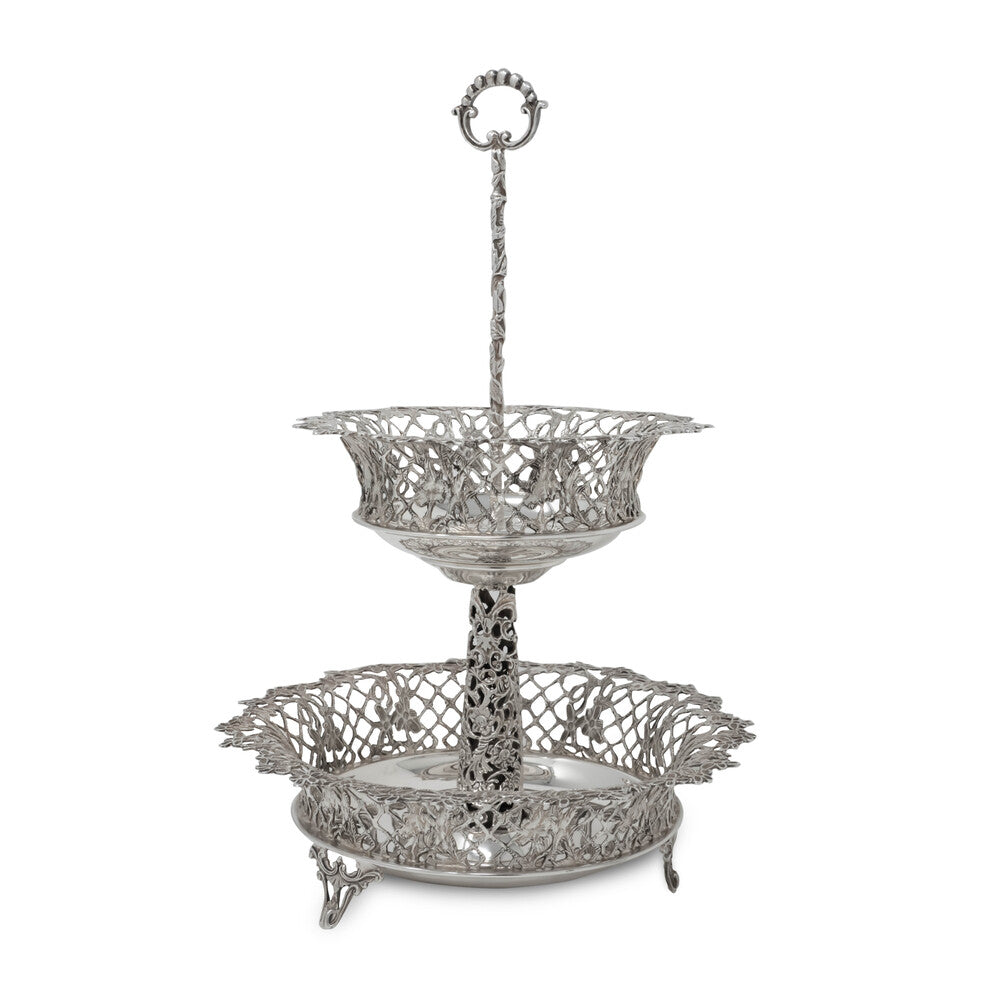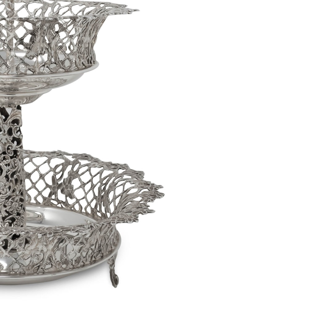 Alzata a due piani della collezione Prestigio Argenti, realizzata in Argento 800 con decoro traforato.