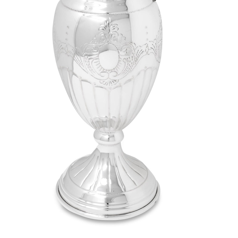 Anfora della collezione Prestigio Argenti, realizzata in Argento 800 con decorocesellatobarocco e con manico in fusione.