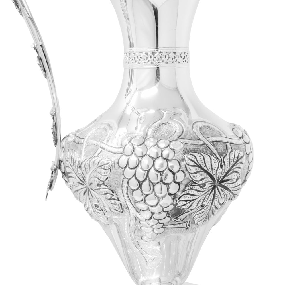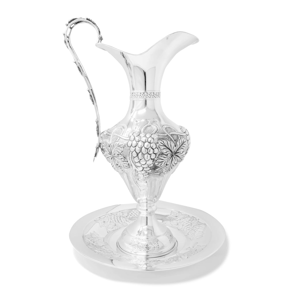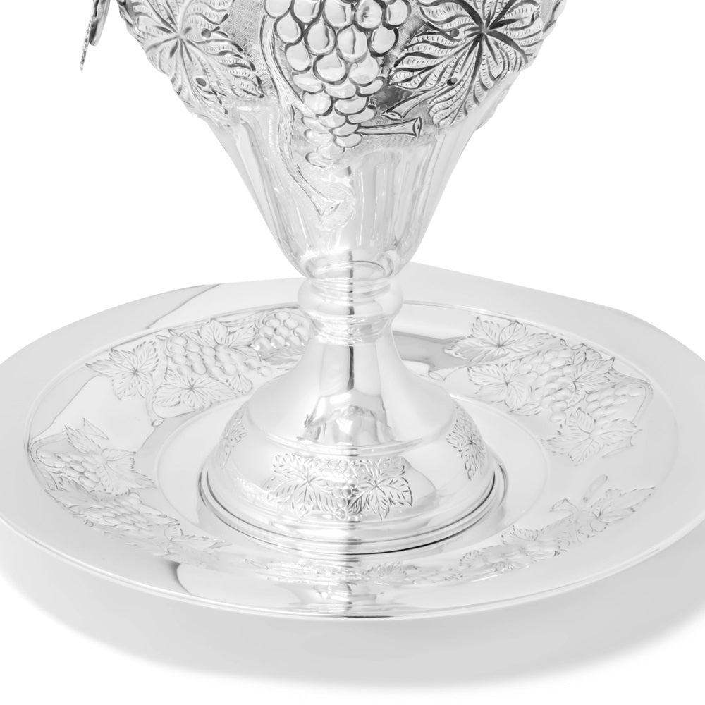 Anfora con Piatto della collezione Prestigio Argenti, realizzata in Argento 800 con decoro a sbalzo.