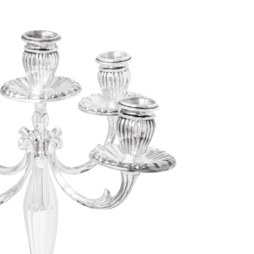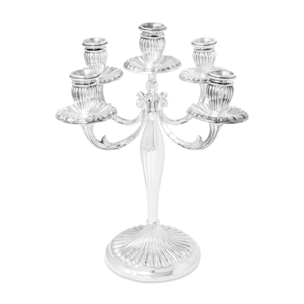 Candeliere a 5 Fiamme della collezione Prestigio Argenti, realizzato in Argento 800 con decoro rigato.