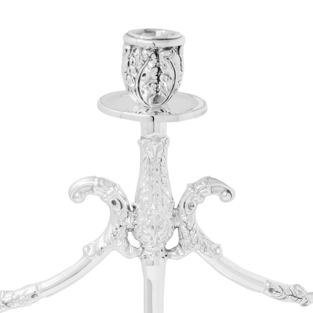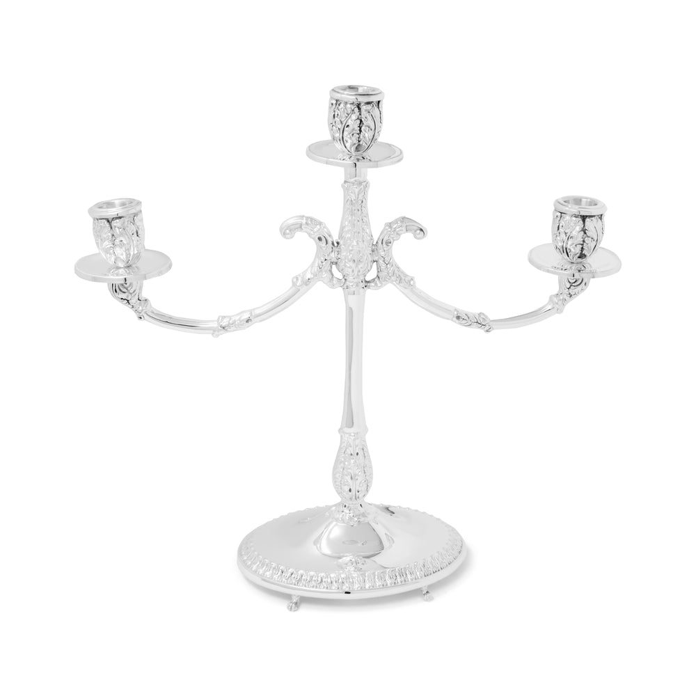 Candeliere a 3 Fiamme della collezione Prestigio Argenti, realizzato in Argento 800 con base in stile impero e parte alta con decoroin stile barocco.