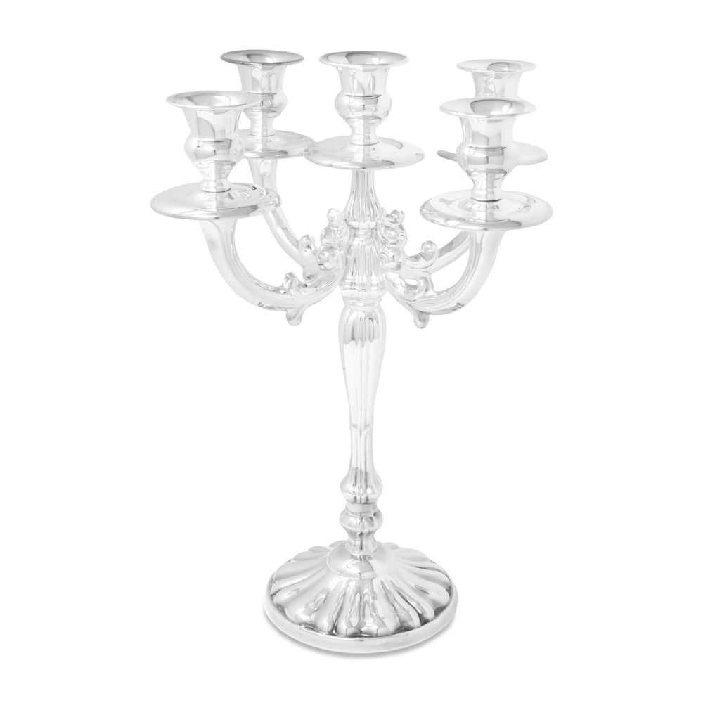 Candeliere a 5 Fiamme della collezione Prestigio Argenti, realizzato in Argento 800 con decoroin stile barocco.