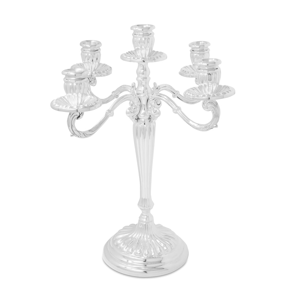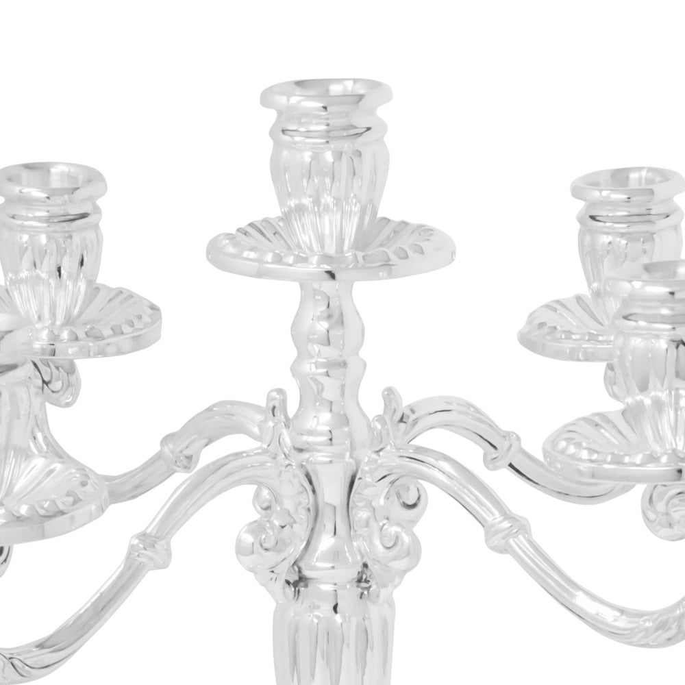Candeliere a 5 Fiamme della collezione Prestigio Argenti, realizzato in Argento 800 con decoroin stile barocco.