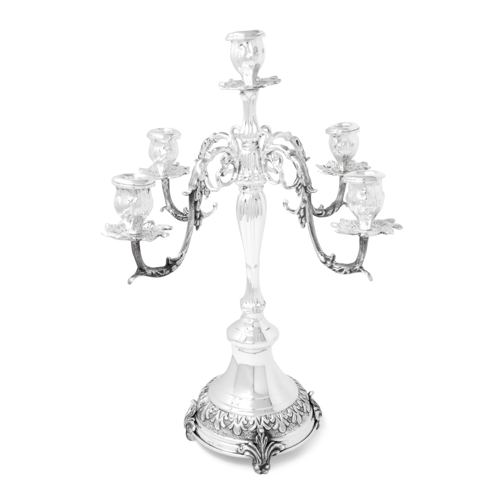 Candeliere Barocco a 5 Fiamme Argento 800 h. 41 cm.