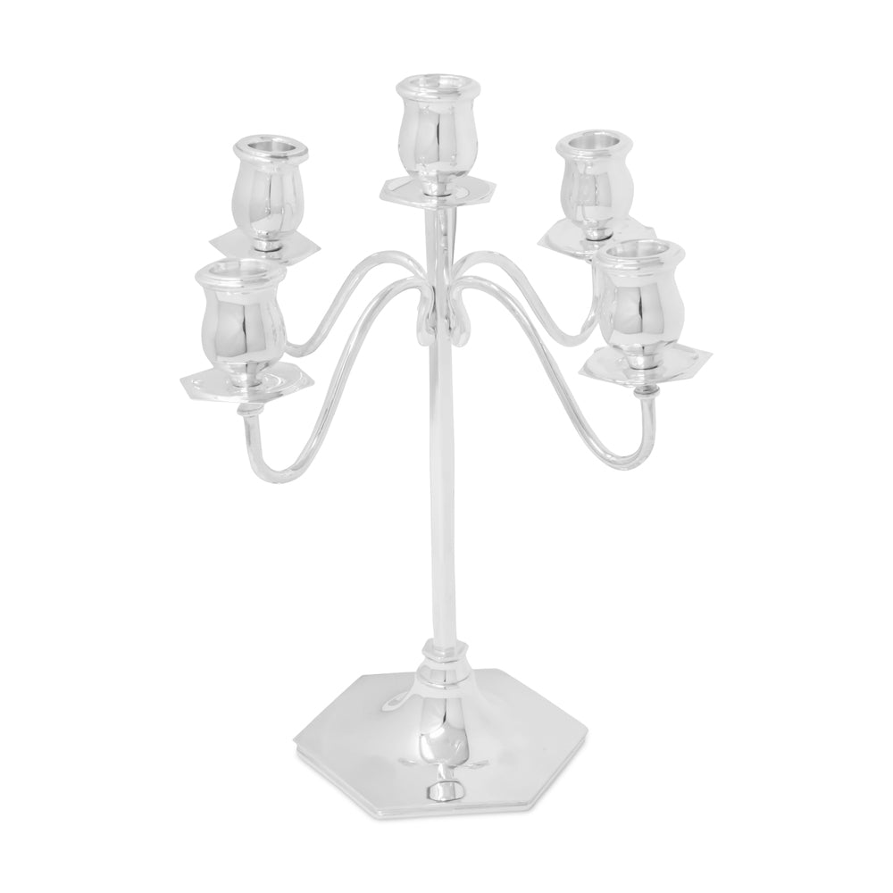 Candeliere Liscio a 5 Fiamme Argento 800 h. 30 cm.