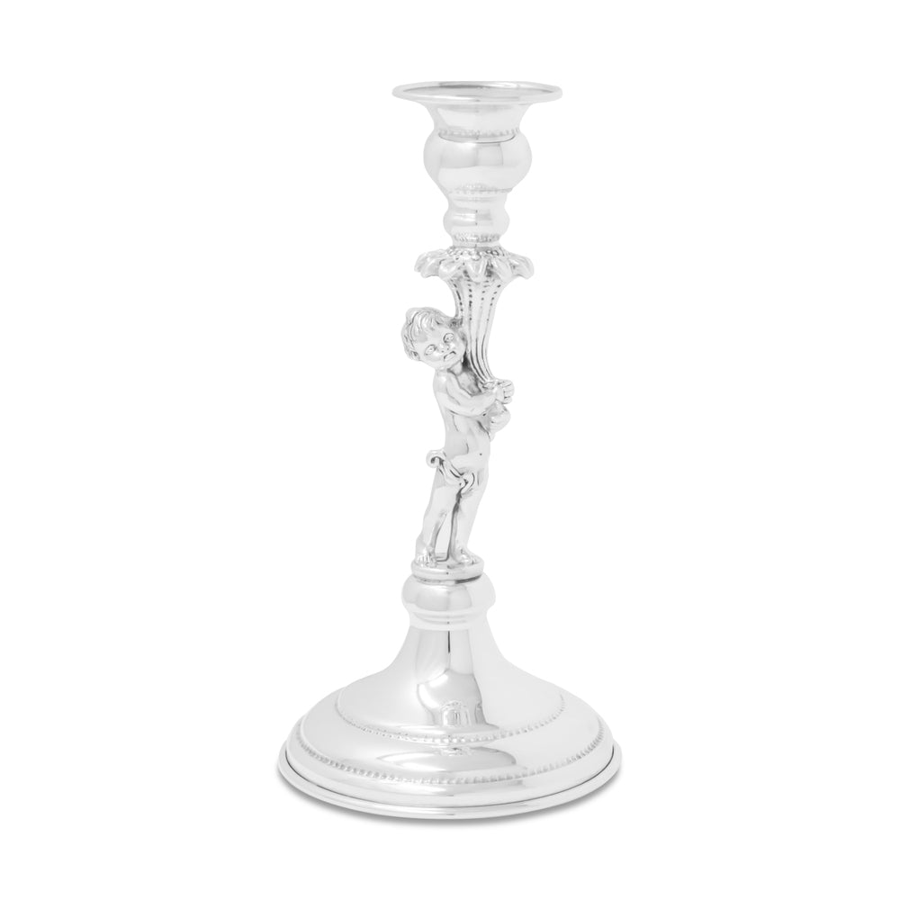 Candeliere Monofiamma della collezione Prestigio Argenti, realizzato in Argento 925% con decorazione centrale.