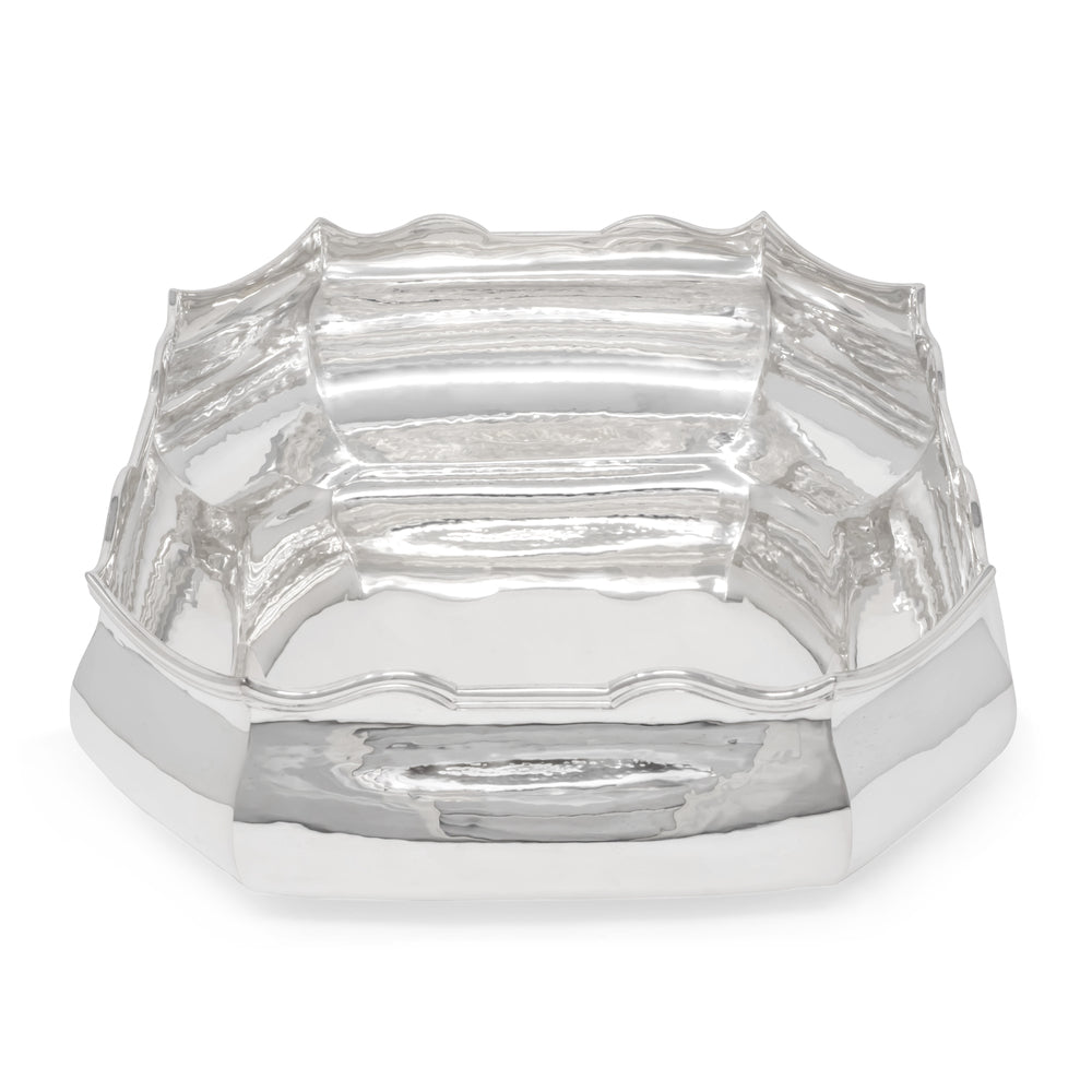 Centrotavola della collezione Prestigio Argenti, realizzato in Argento 800 con finitura liscia.