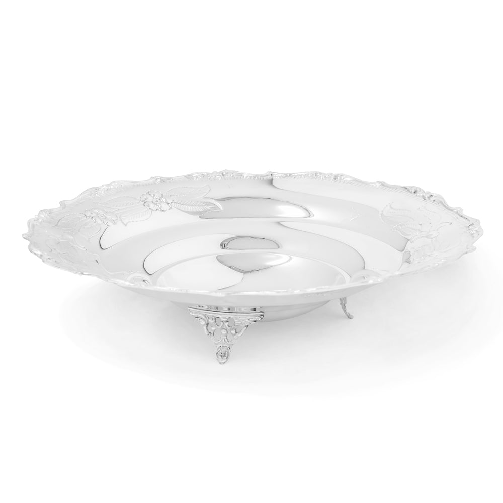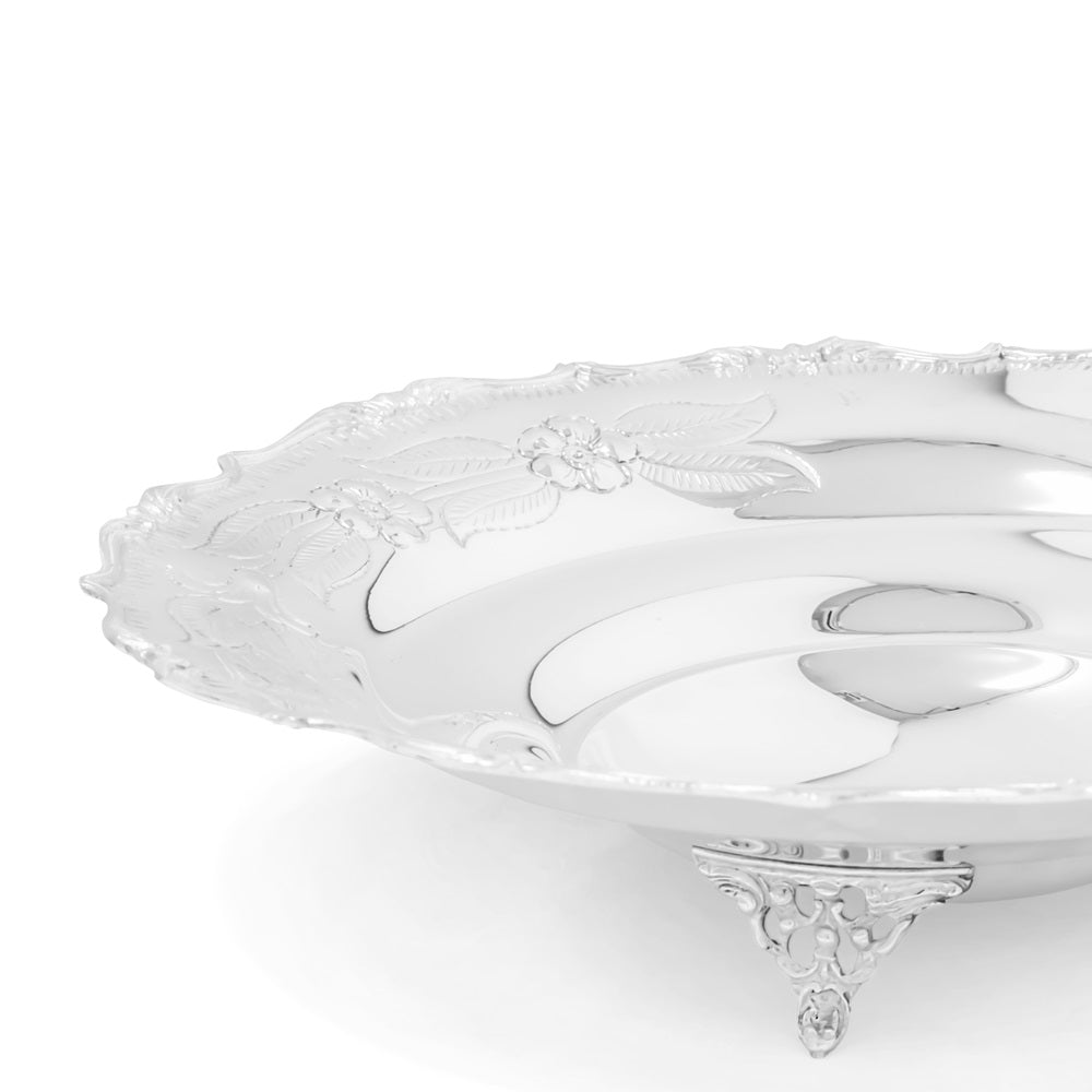 Cestello della collezione Prestigio Argenti, realizzato in Argento 800, con decoro floreale cesellato a sbalzo.