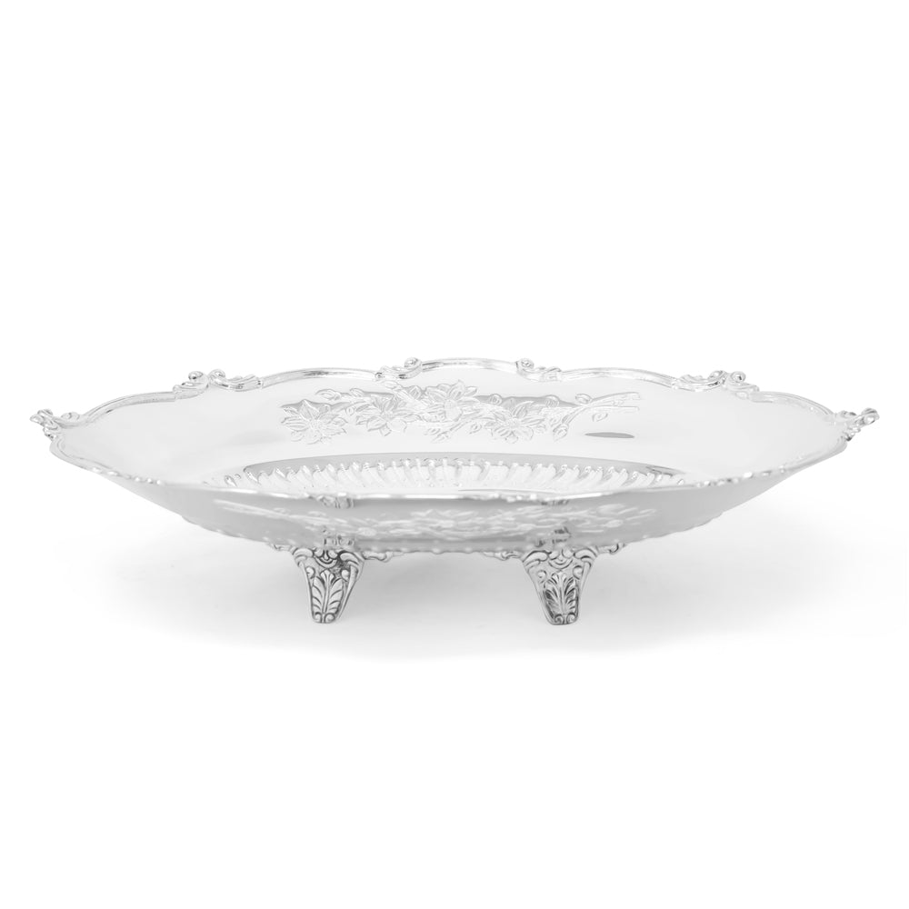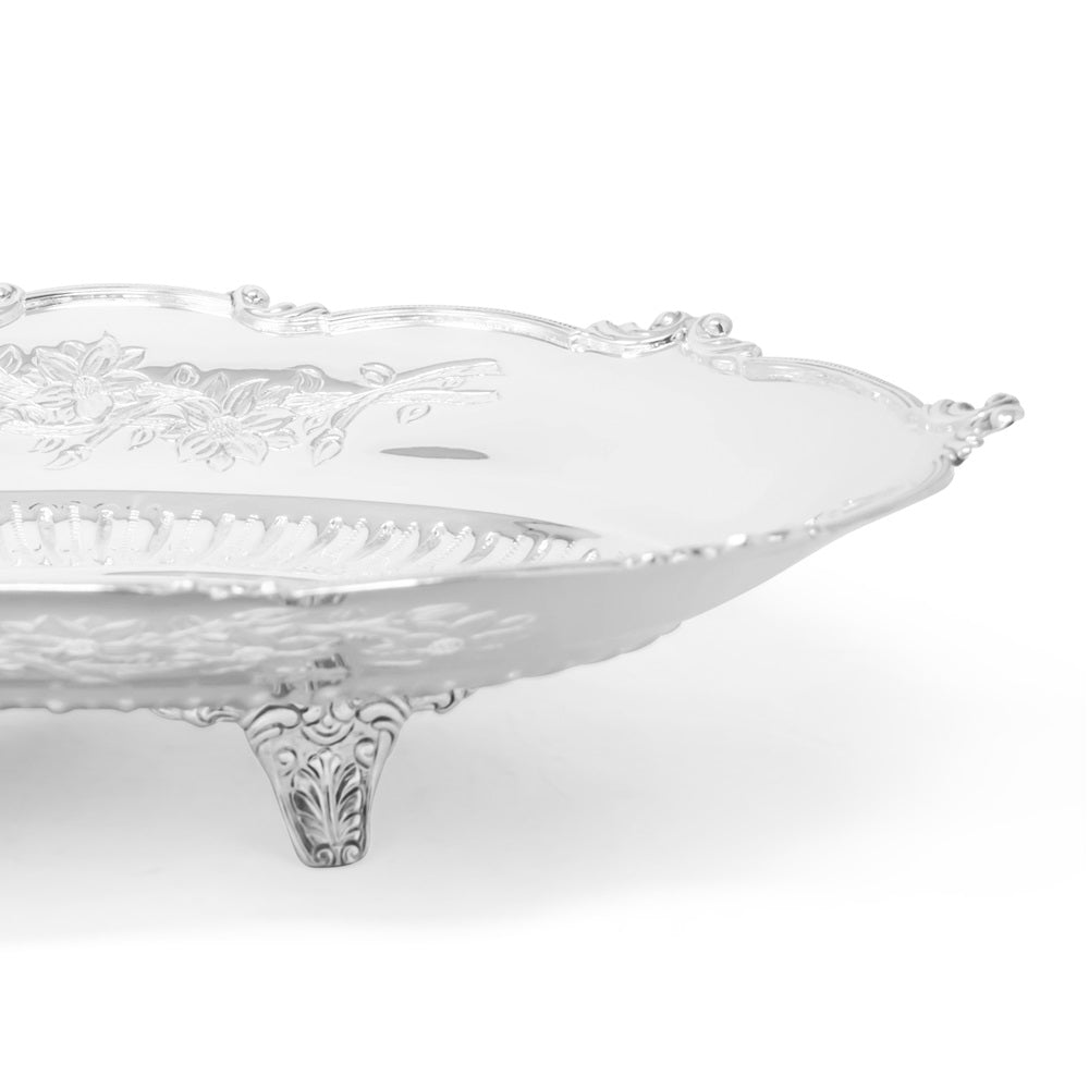 Cestello della collezione Prestigio Argenti, realizzato in Argento 800, con decoro floreale, bordo smerlato e interno rigato.
