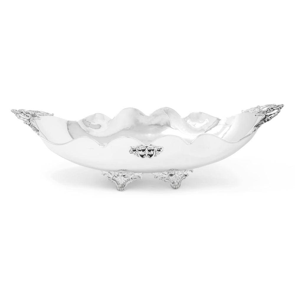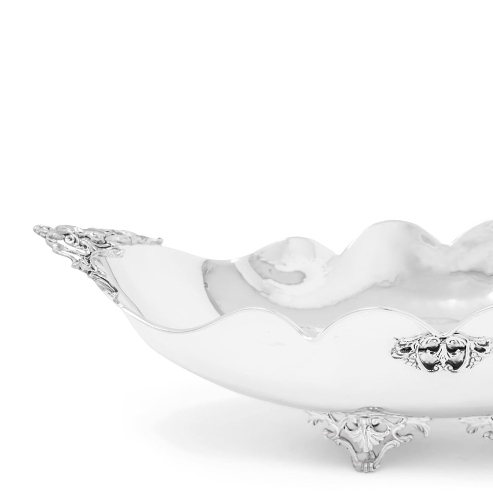Jatte della collezione Prestigio Argenti, realizzata in Argento 800, con decoro liscio, con applicazioni, manici e piedini in fusione.
