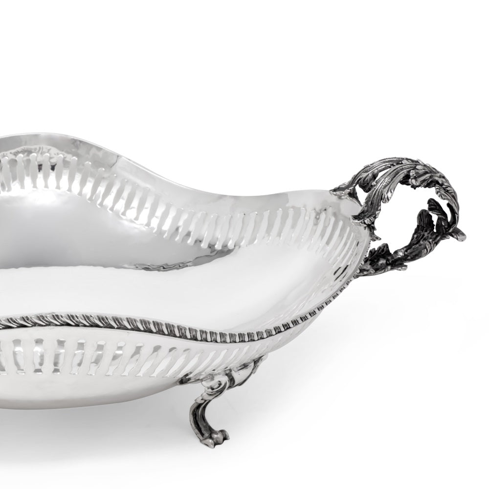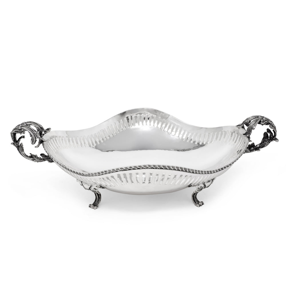 Jatte della collezione Prestigio Argenti, realizzata in Argento 800 con bordo traforato e manici e piedini in fusione.