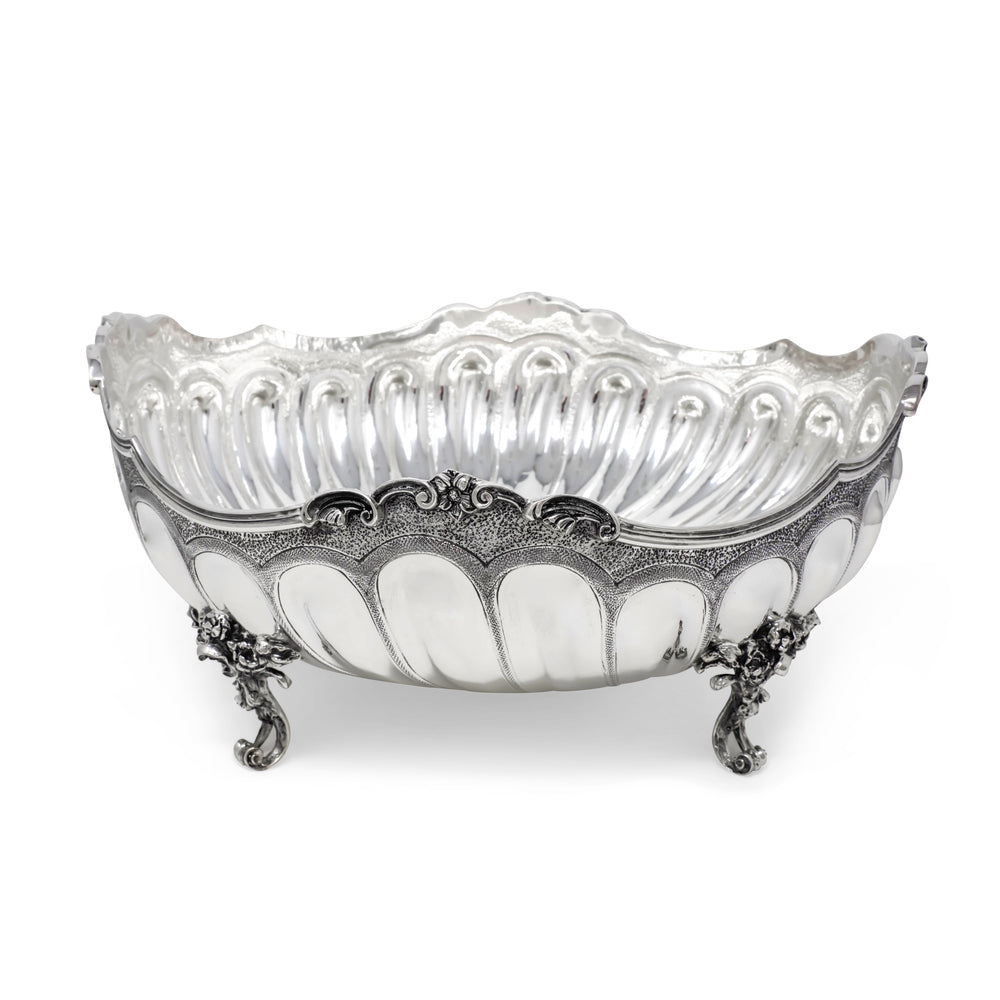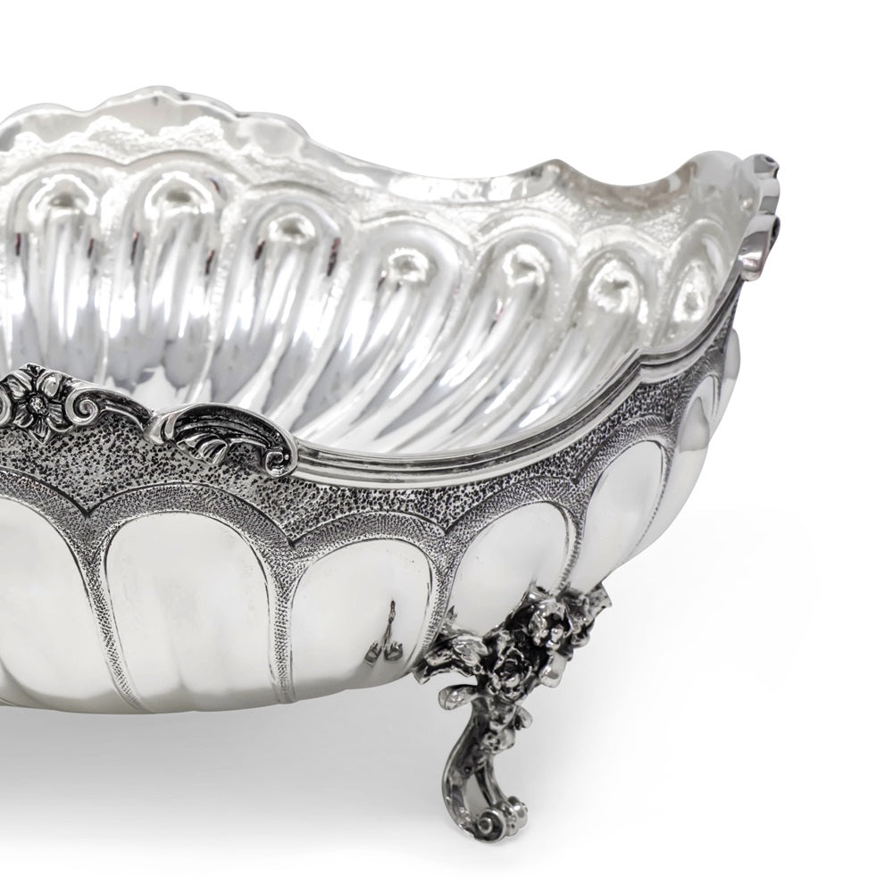 Jatte della collezione Prestigio Argenti, realizzata in Argento 800 con decoro barocco e bordo e piedini in fusione.