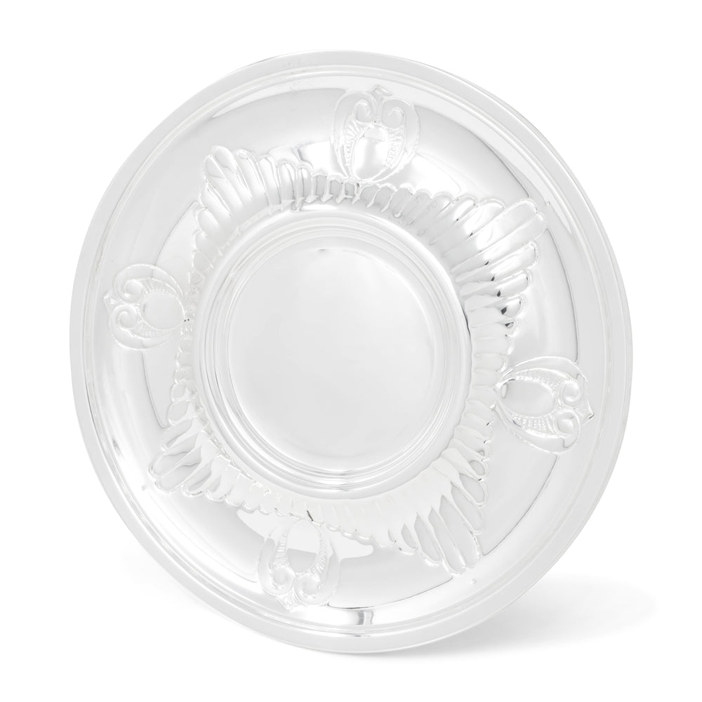 Piatto sotto Anfora della collezione Prestigio Argenti, realizzato in Argento 800 con decoro barocco.