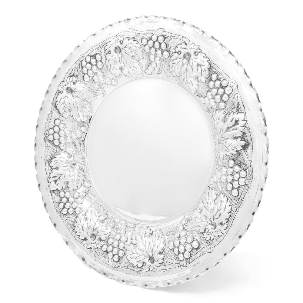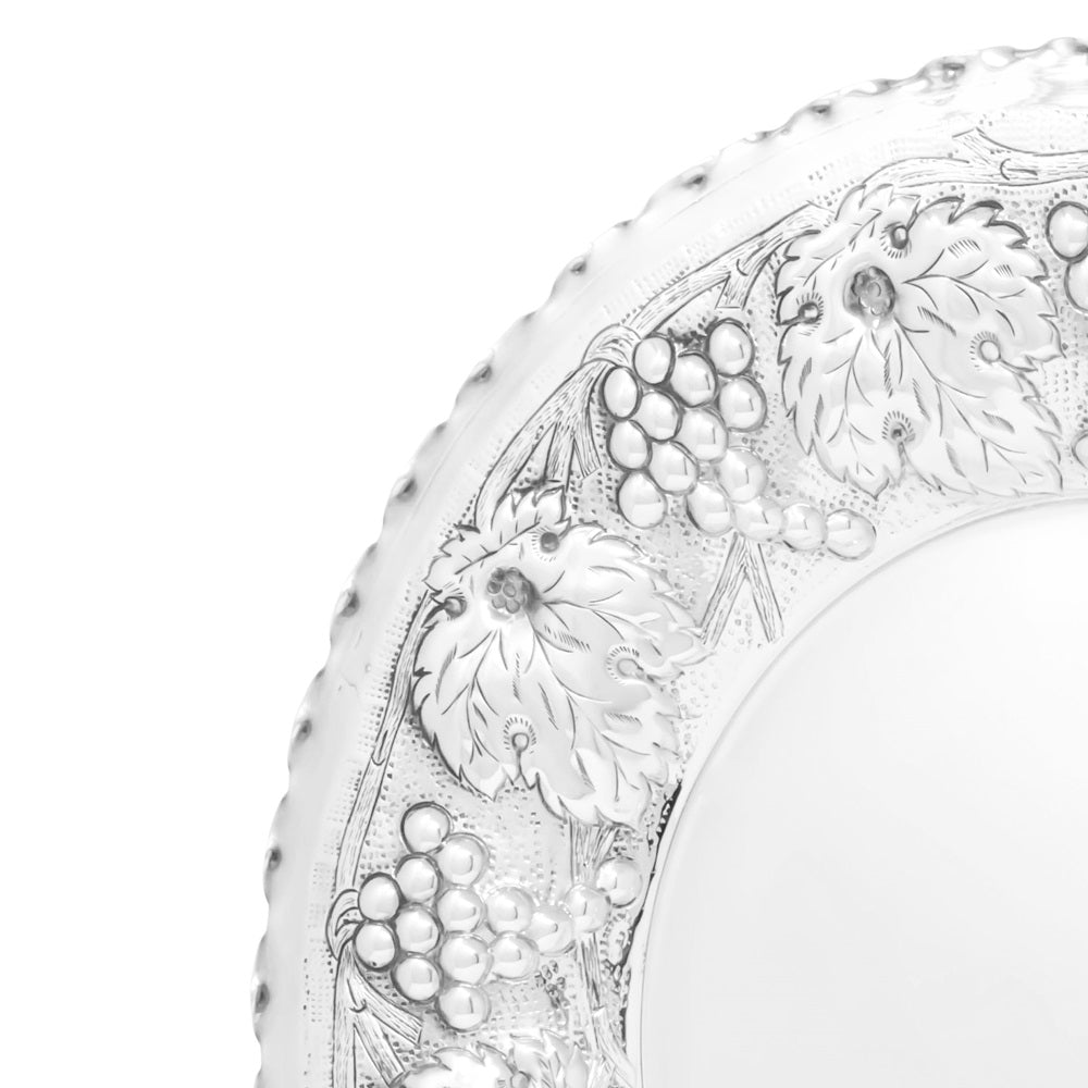 Piatto Tondo della collezione Prestigio Argenti, realizzate in Argento 800, con decorazione a sbalzo.