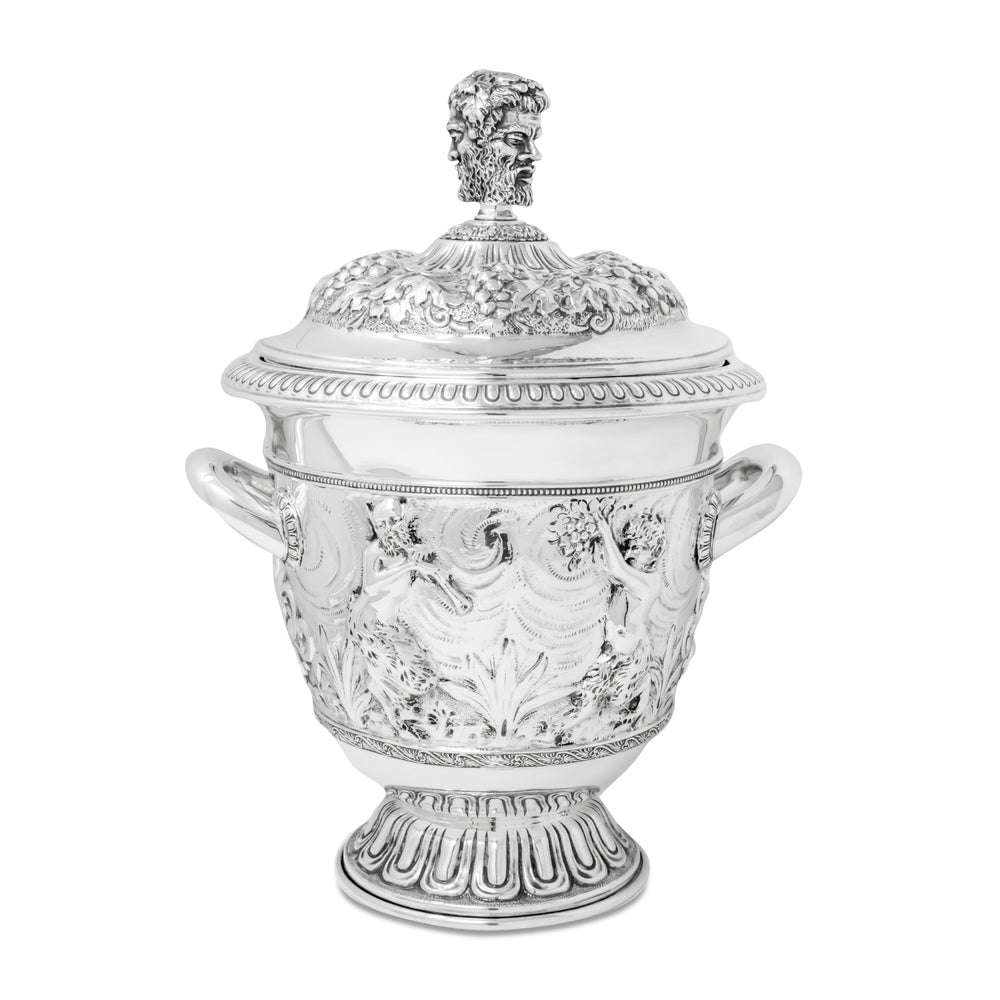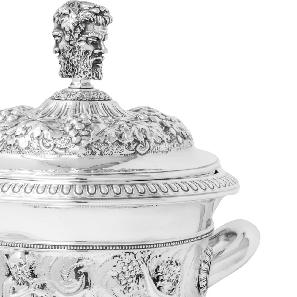 Potiche della collezione Prestigio Argenti, realizzato in Argento 800 con decorazione a sbalzo con pomo in fusione.