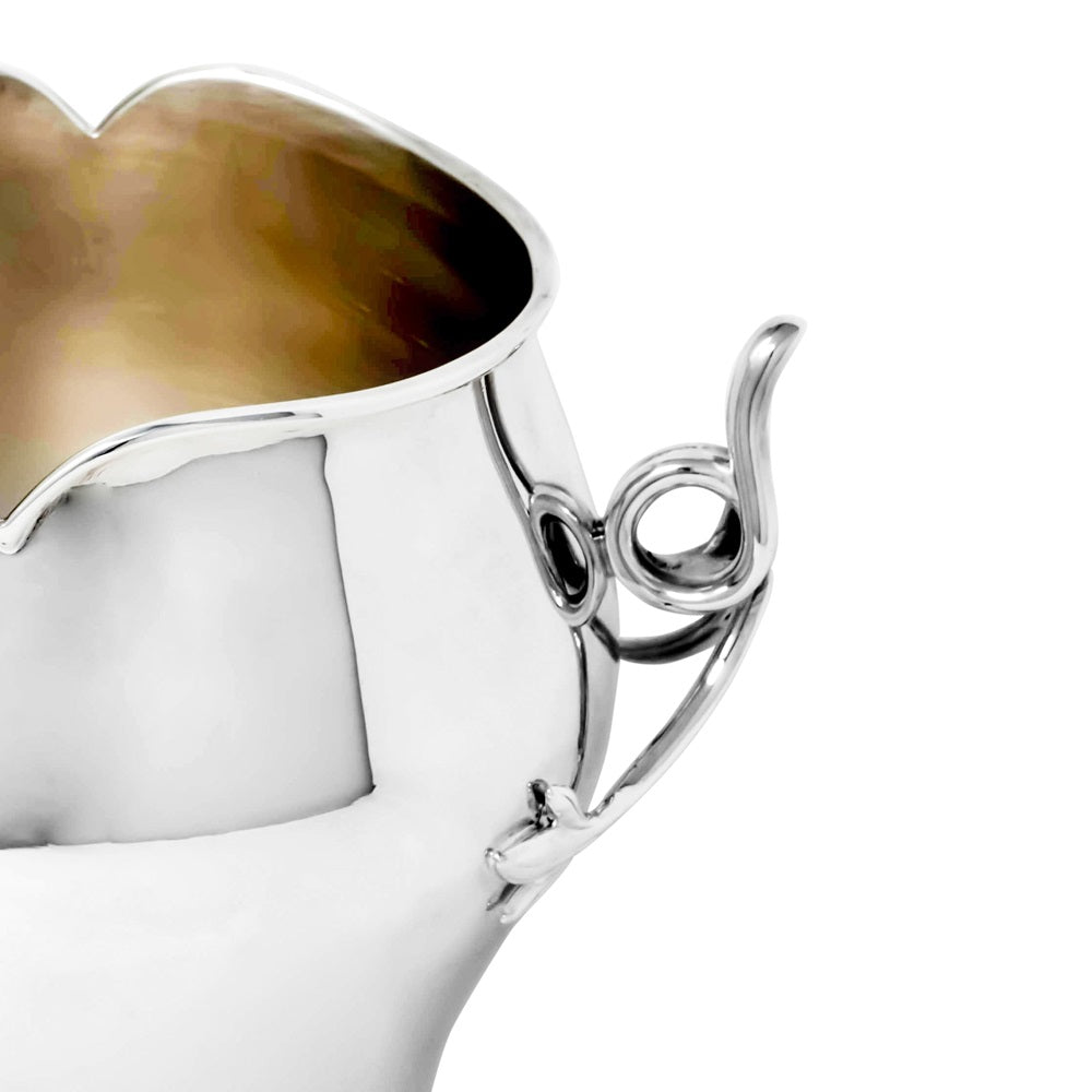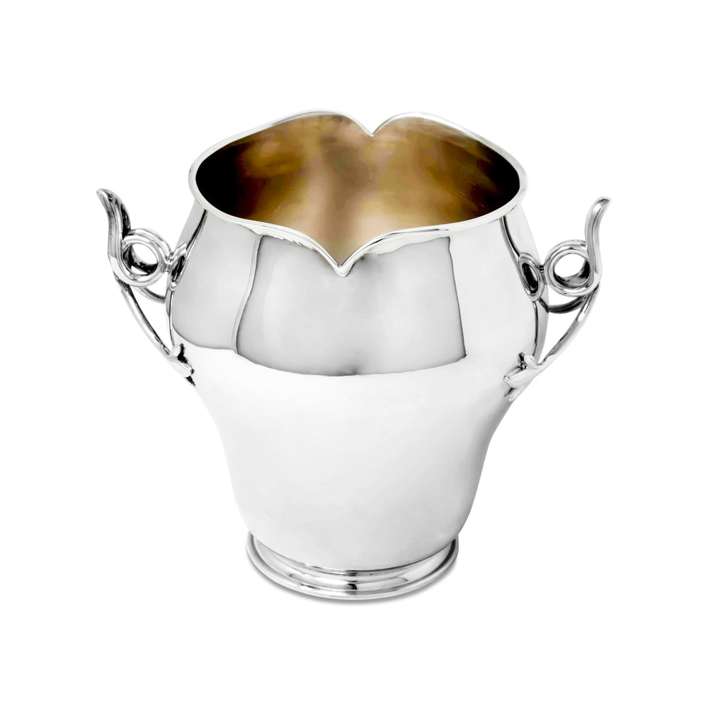 Secchiello Ghiaccio della collezione Prestigio Argenti, realizzata in Argento 800 con decoro liscio e manici a nodo.