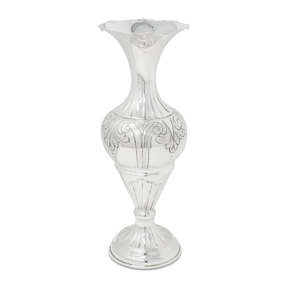 Vaso della collezione Prestigio Argenti, realizzato in Argento 800 con decoro barocco sbalzato.