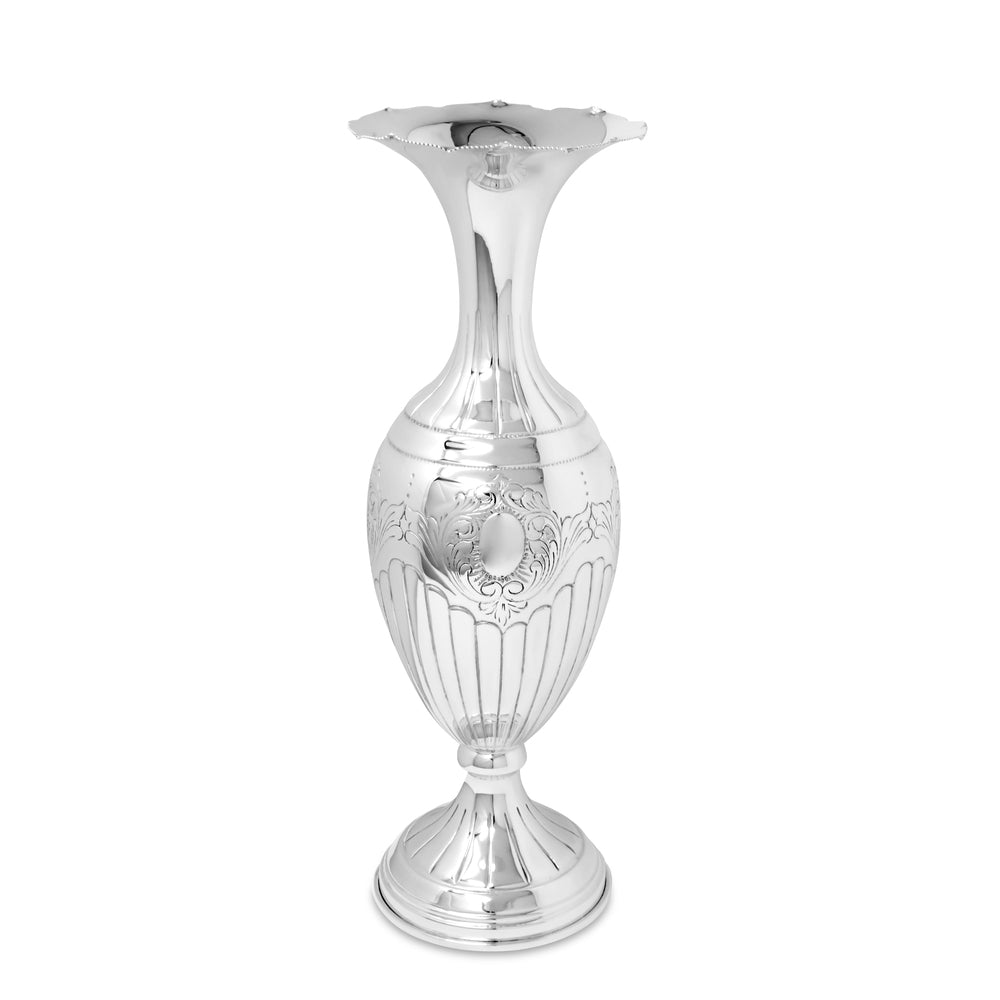 Vaso della collezione Prestigio Argenti, realizzato in Argento 800 con decorobarocco cesellato a sbalzo.