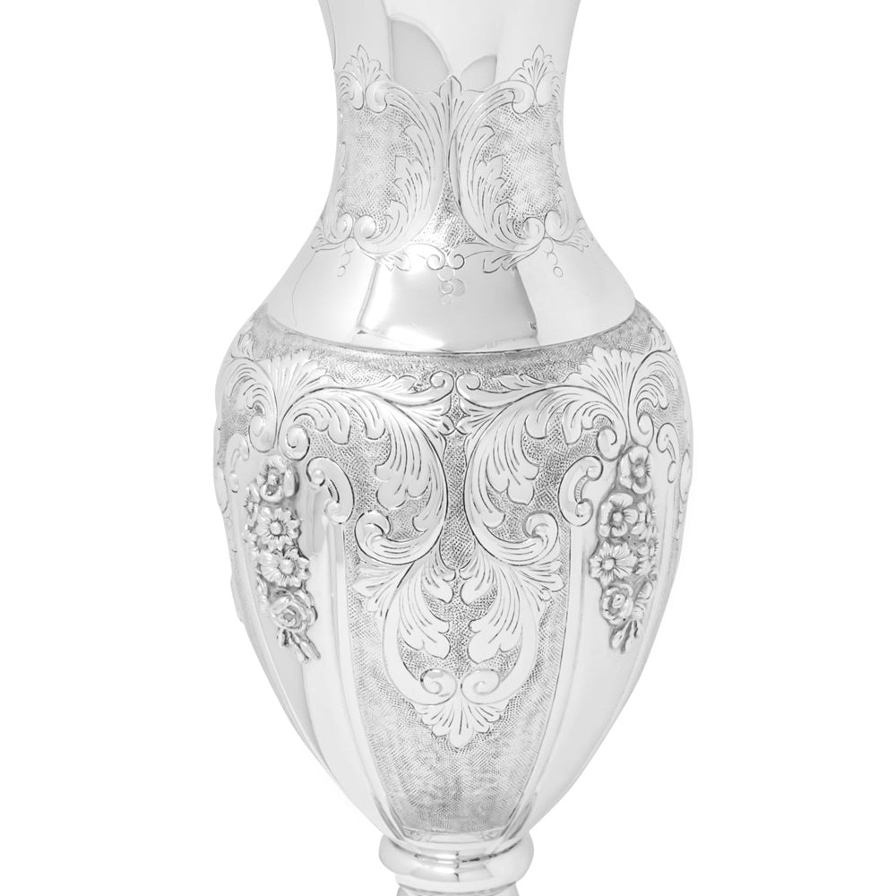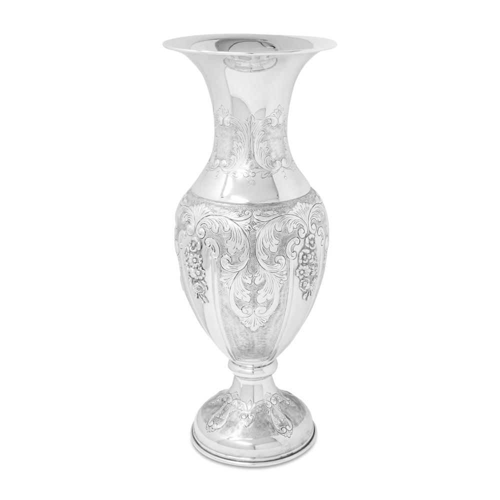 Vaso della collezione Prestigio Argenti, realizzato in Argento 800 con decoro barocco cesellato con fiori.