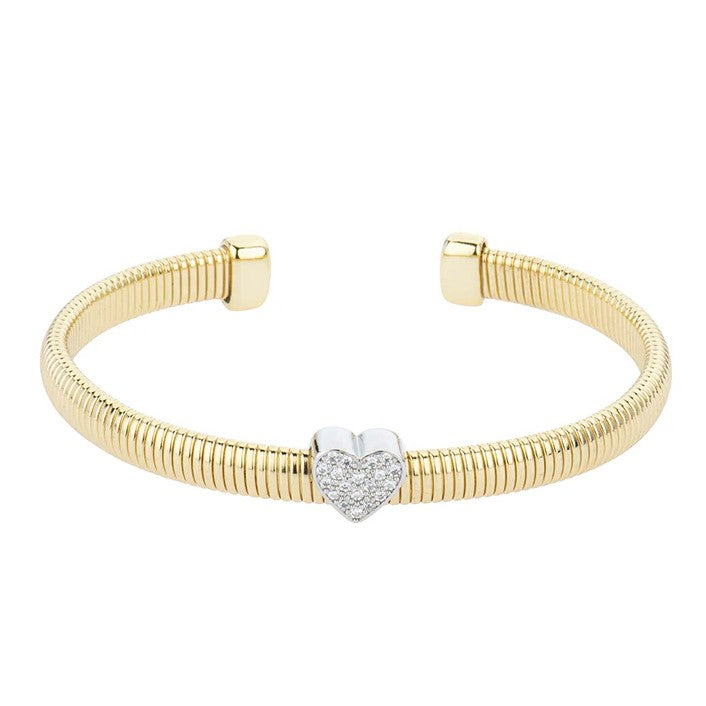 Bracciale a fascia con maglia tubogas della collezione "Contemporary Jewels Classy" di Barbieri Creazioni, realizzato in ottone con finitura galvanica protettiva, impreziosito da un cuore centrale con pavé di zirconi bianchi.