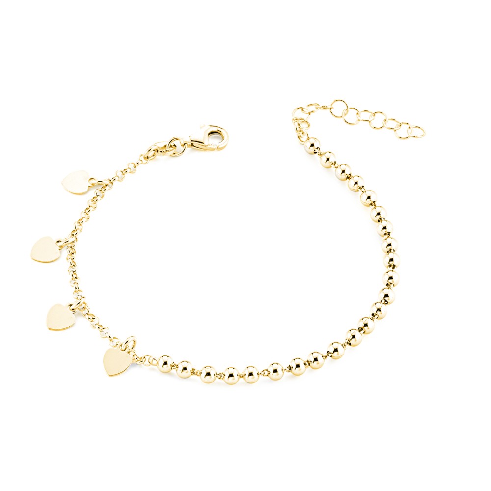Bracciale Double Love della collezione "My Little Emotion" di Hector by Marcello Pane, realizzato in Argento 925%, con finitura gold e cuoricini pendenti.