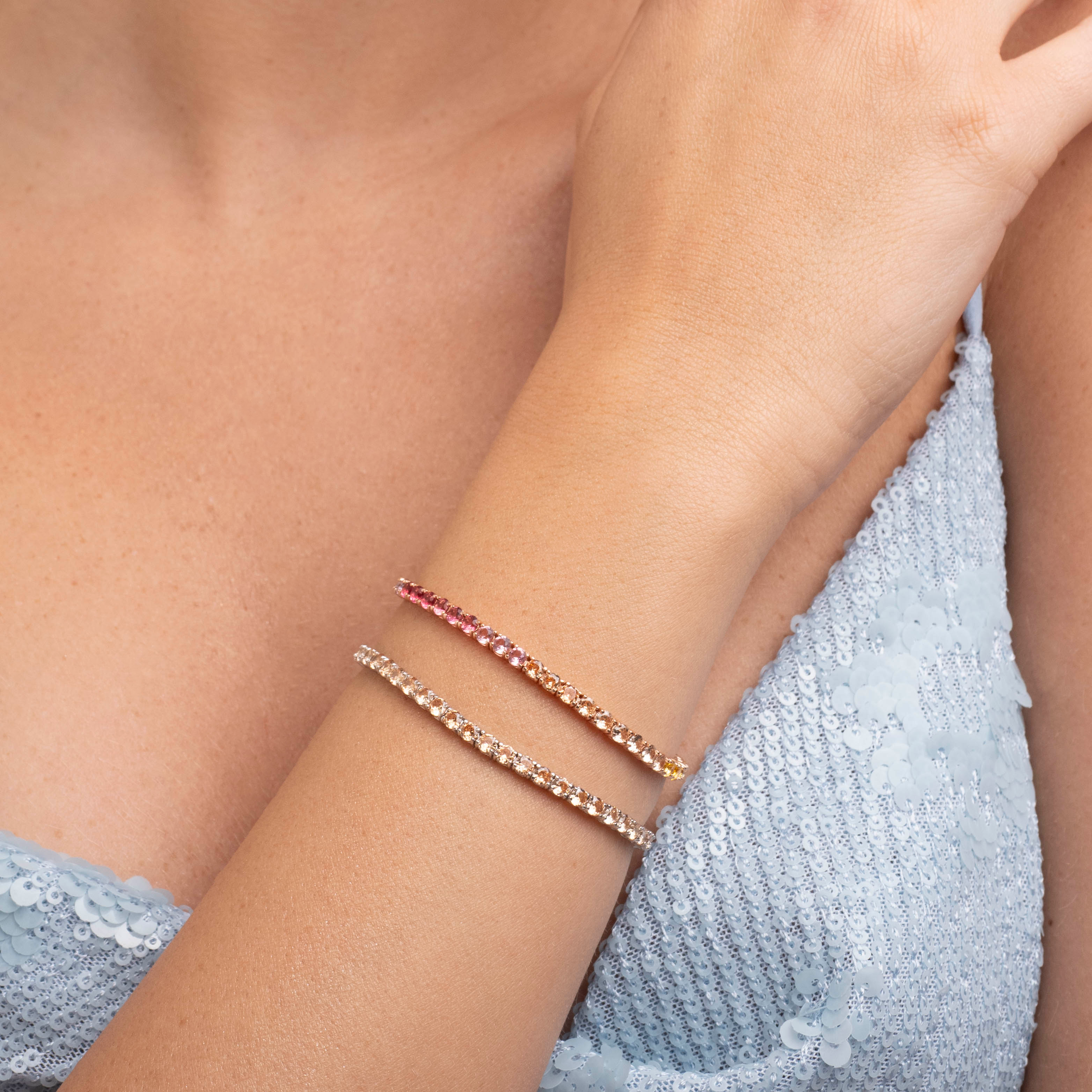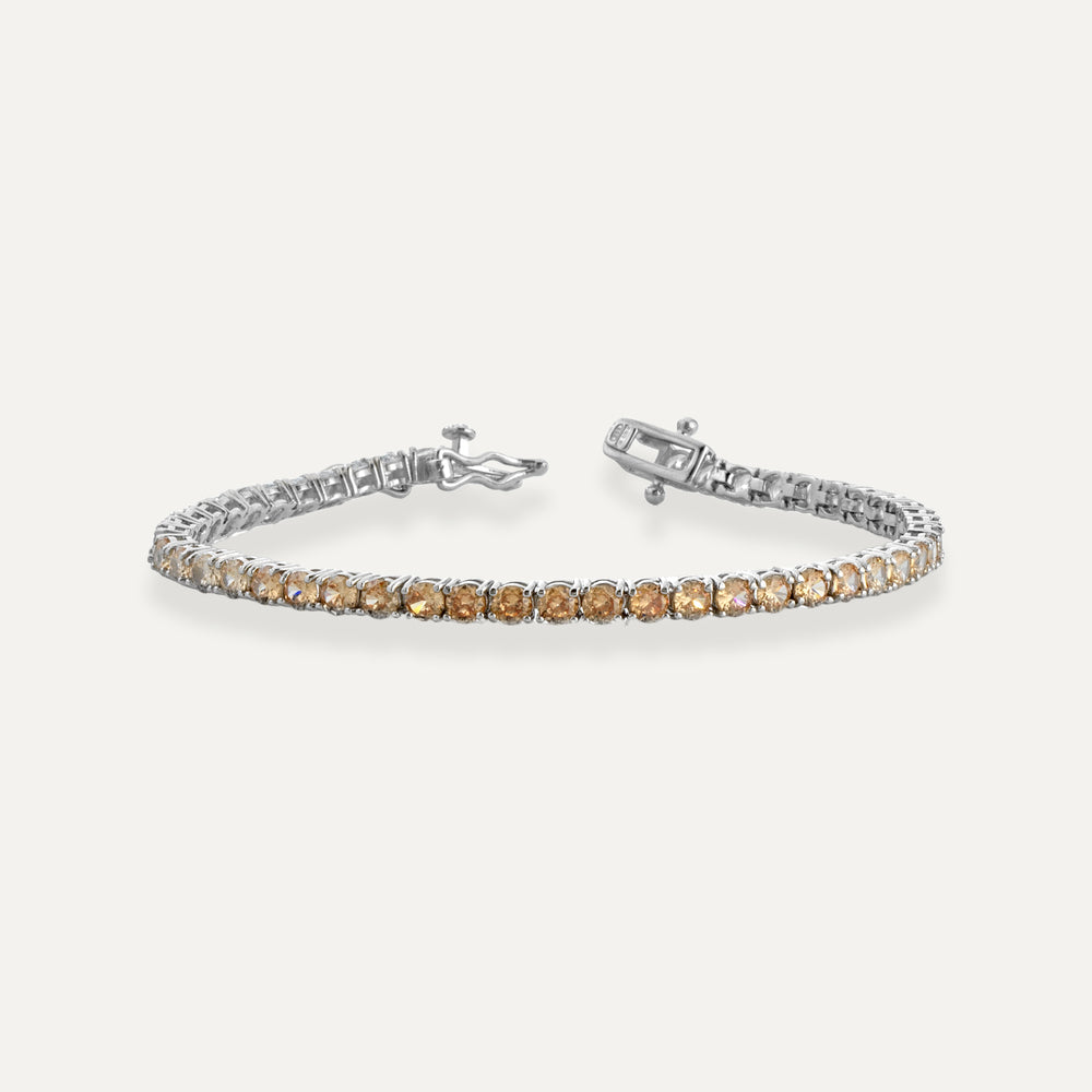 Bracciale Tennis realizzato in Argento 925%, rodiato in Oro Bianco 18 kt. con una fila di zirconi brown sfumati, incastonati da 4 griffes, dal diametro di 3 mm.