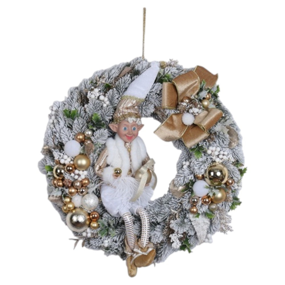Ghirlanda Innevata con Elfo Fiori di Lena Ø50 cm.