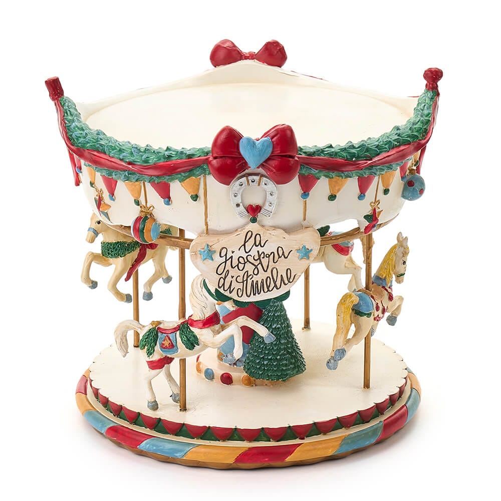 Giostra con cavalli della collezione "La Giostra di Amelie" di Nuvole di Stoffa, realizzata in resina, rifinita nei minimi dettagli.