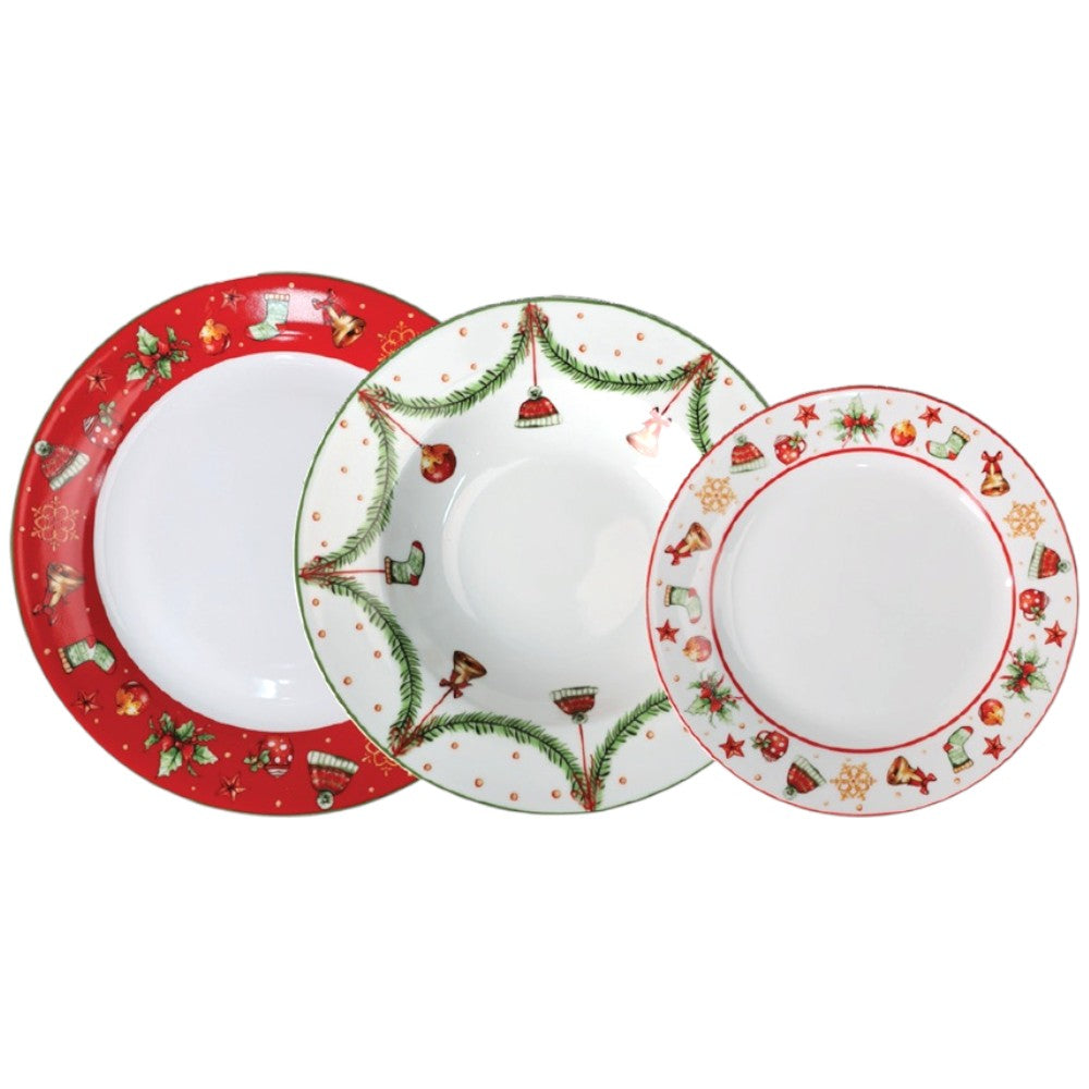 Il servizio è composto da: 12 piatti piani (Ø 27cm.), 12 piatti fondi (Ø 23 cm.) ,12 piatti frutta (Ø 19cm.).