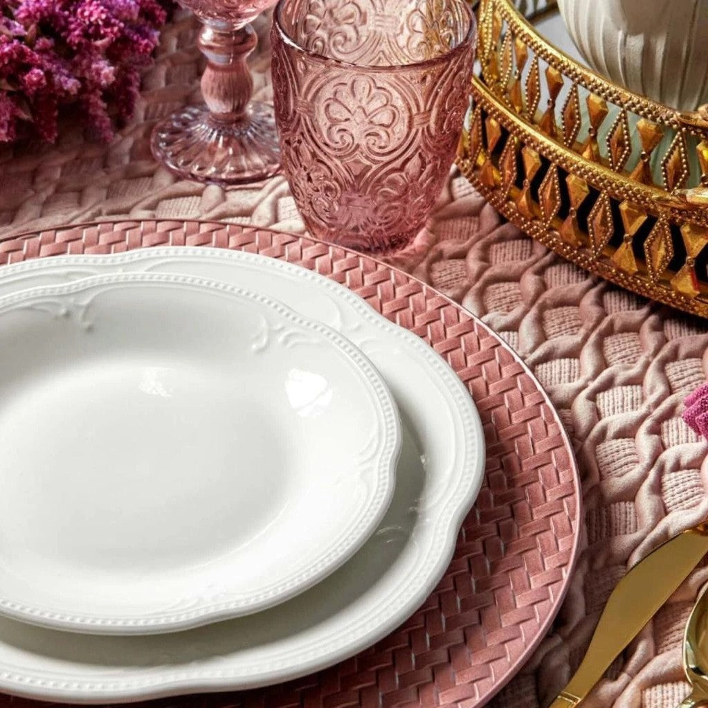 Il servizio si distingue per il suo delicato decoro in rilievo, che dona profondità e un tocco sofisticato alla mise en place, mentre il design classico ma ricercato lo rende perfetto sia per l’uso quotidiano sia per le occasioni speciali, adattandosi con armonia a diversi stili di arredamento, dal più tradizionale al contemporaneo.