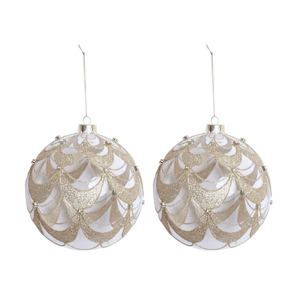 Set da 2 sfere natalizie della collezione "Luci di Natale" di Fiori di Lena, realizzate in vetro con dettagli glitter.