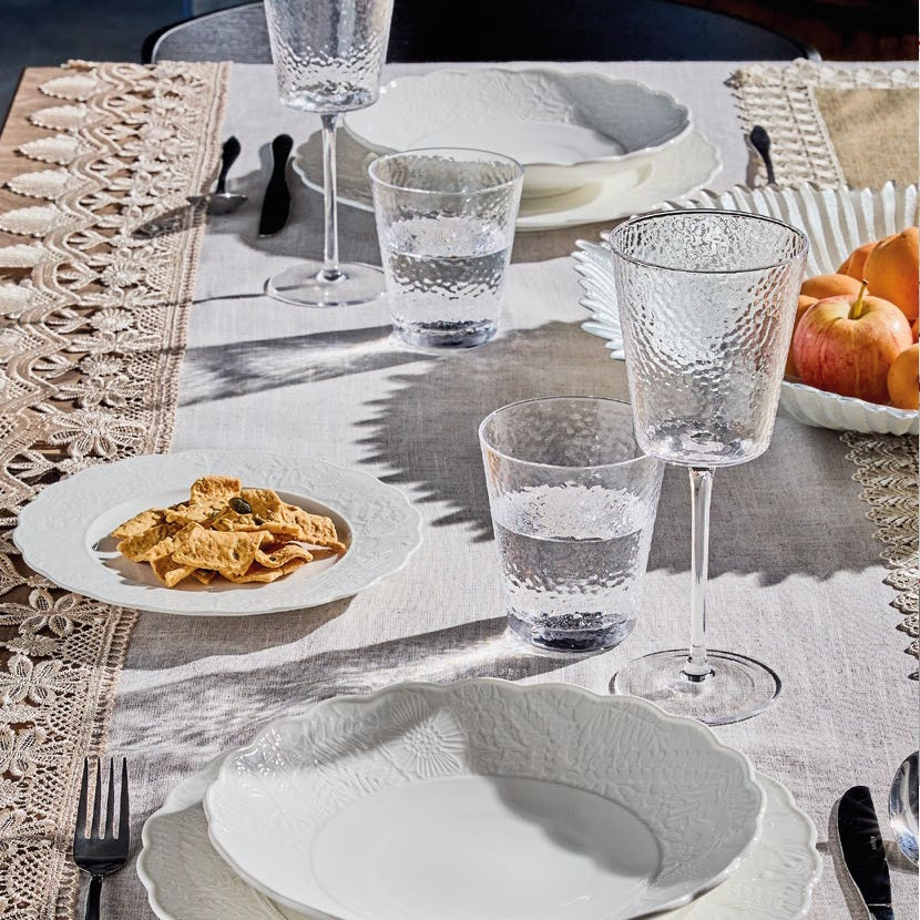 Perfetti sia per l’uso quotidiano che per occasioni speciali, questi piatti rettangolari aggiungono un tocco moderno e luminoso alla mise en place, adattandosi con facilità a tavole classiche o contemporanee.