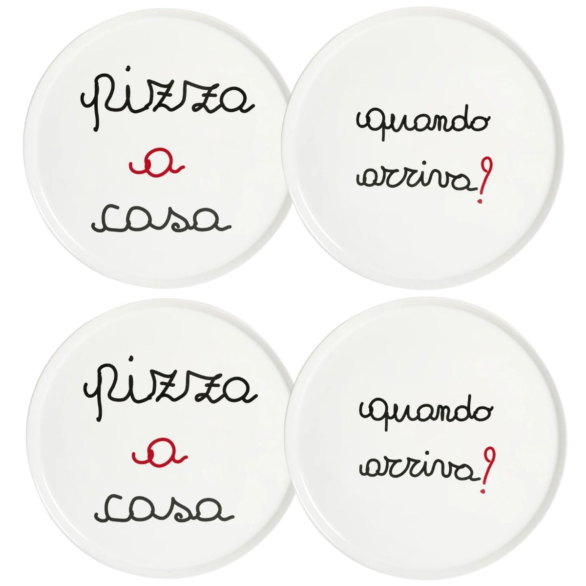 Set 4 Piatti Pizza della collezione di Simple Day, realizzati in gres con finitura lucida.
