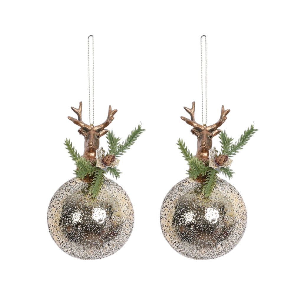 Set 4 Sfere di Natale Cervo Fiori di Lena h.14x8 cm.