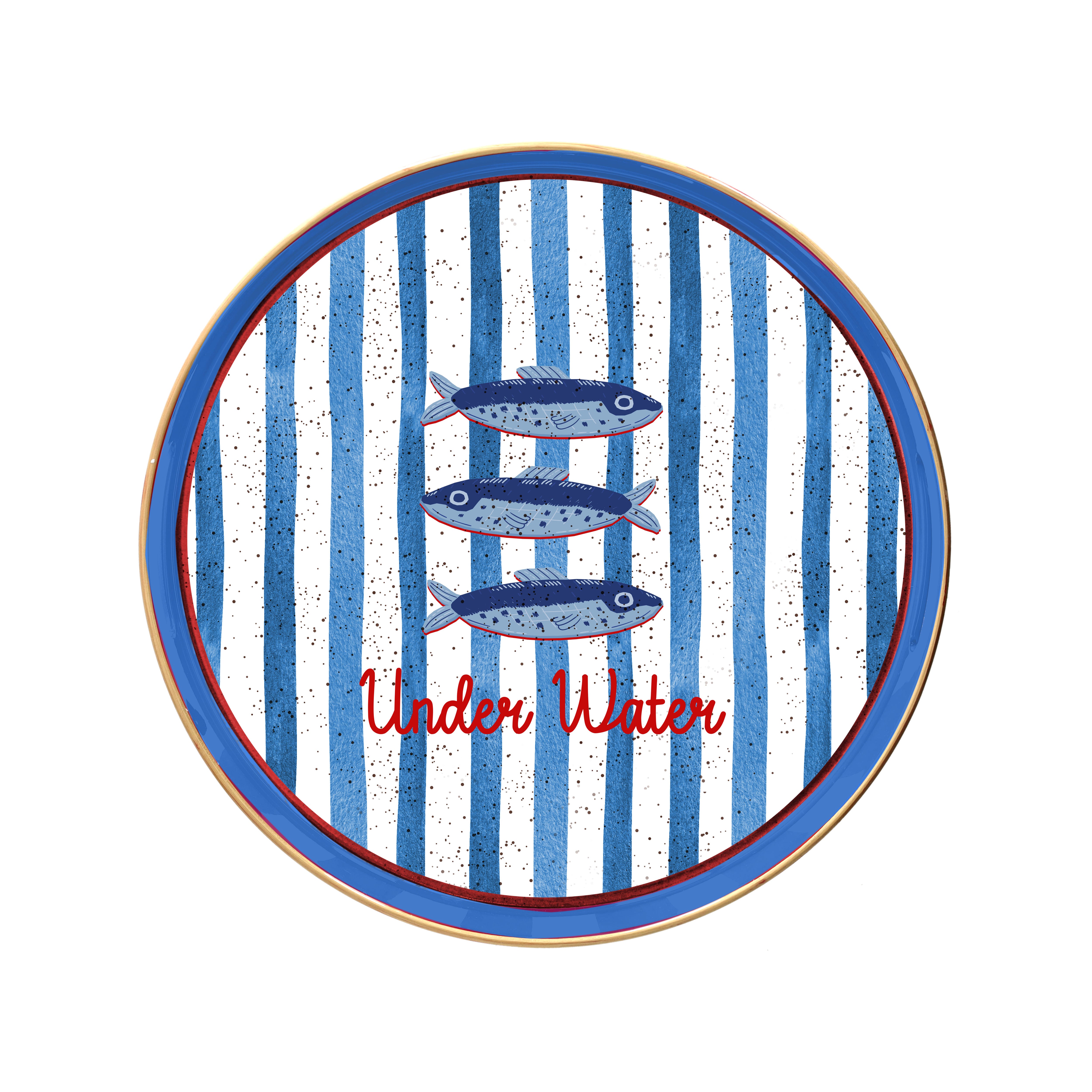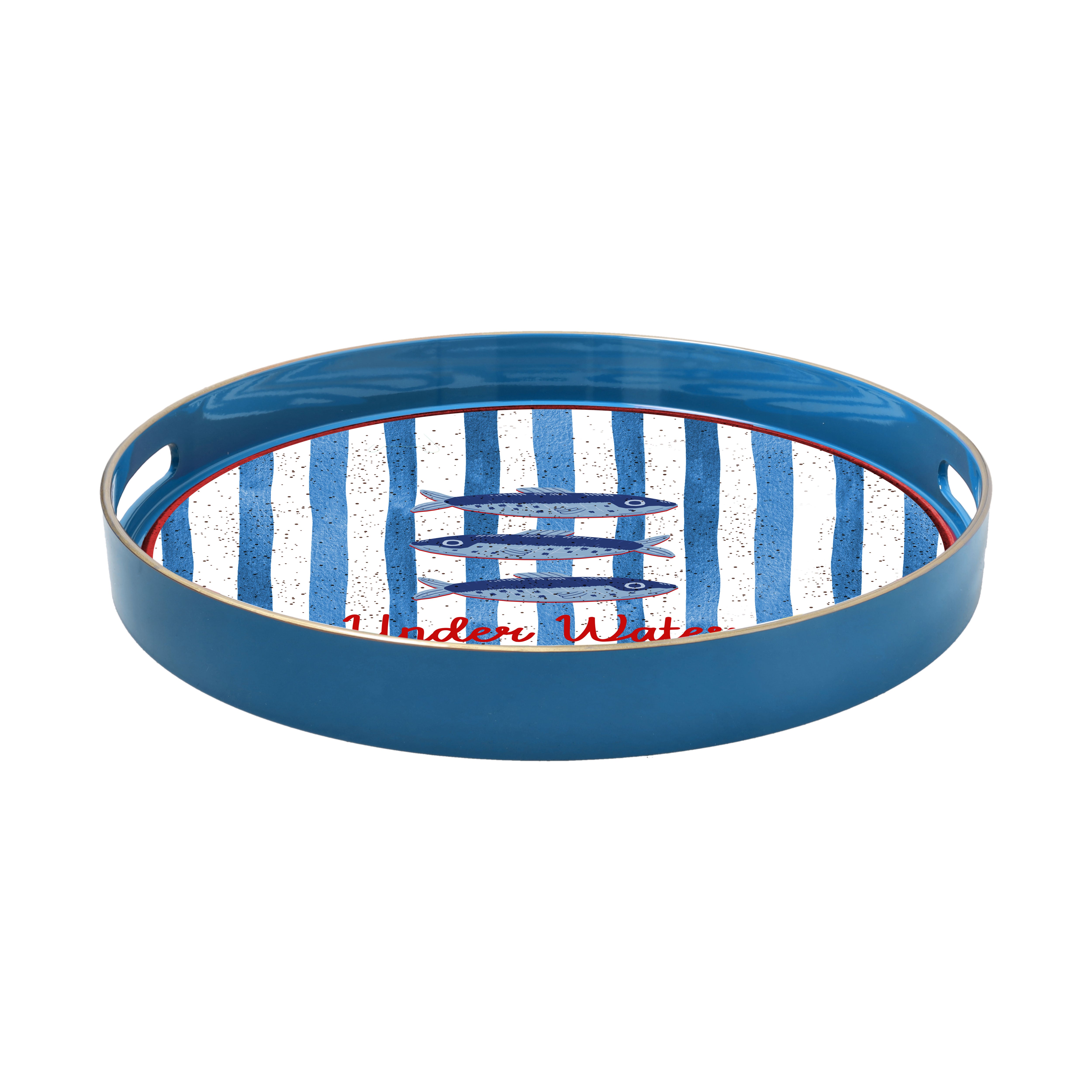 Vassoio rotondo a righe della collezione Summer Time di Andrea Fontebasso, realizzato in resina lucida.