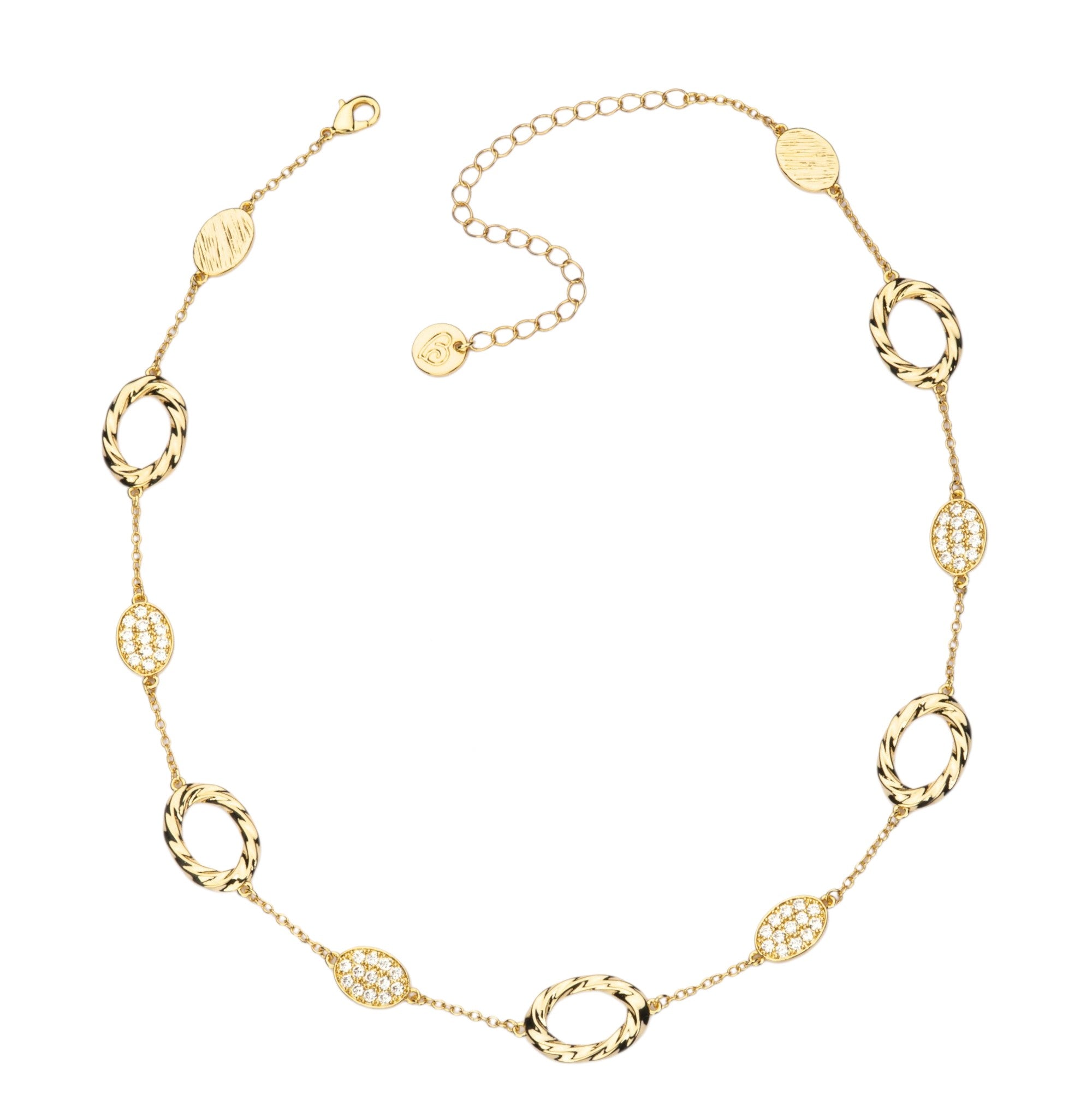 Collana Pavè Torchon della collezione "Contemporary Jewels Classy" di Barbieri Creazioni, realizzata in ottone con finitura galvanica protettiva, impreziosita da anelli torchon ovali, con pavè di zirconi bianchi.