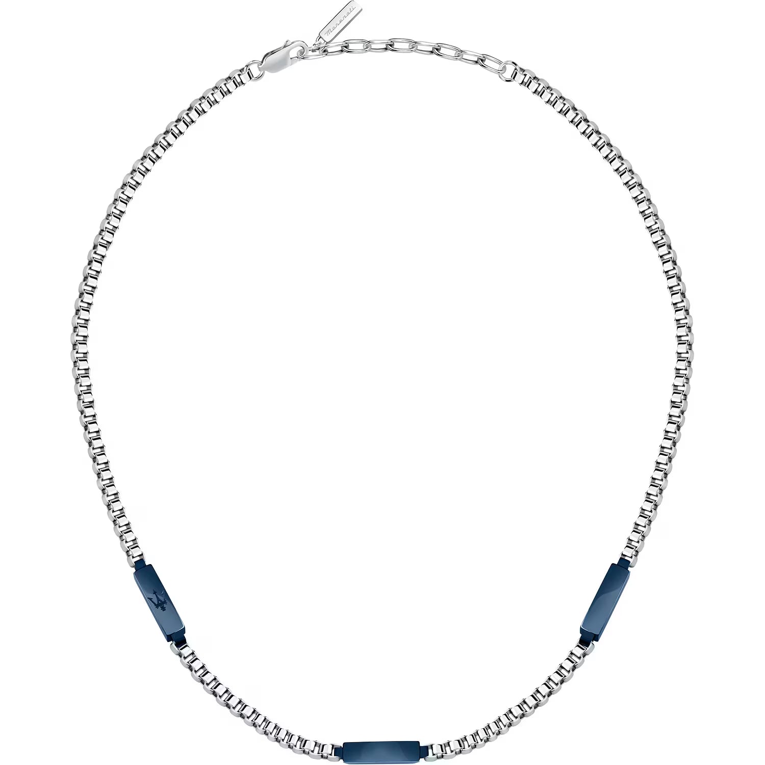 Collana da uomo della collezione "Iconic" di Maserati, realizzata in acciaio anallergico con elementi rettangolari con trattamento ip blu.