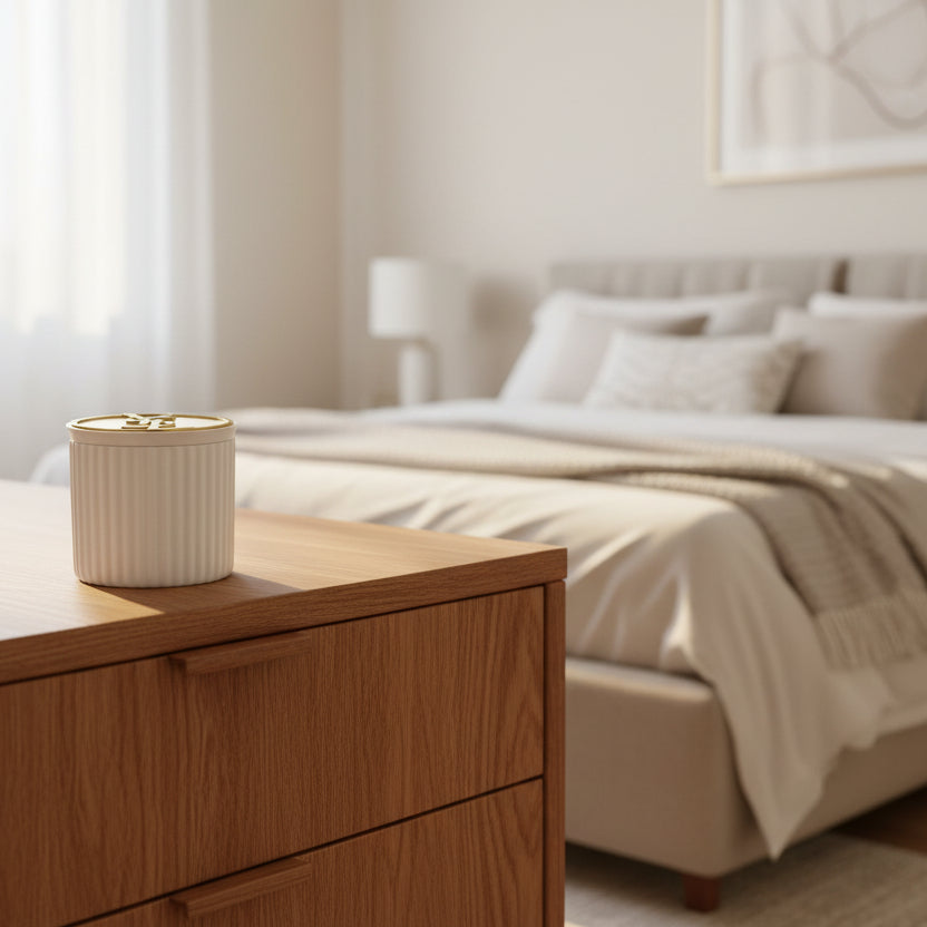 Candela della collezione di Riflessi, realizzata in resina bianca con candela profumata all'interno.