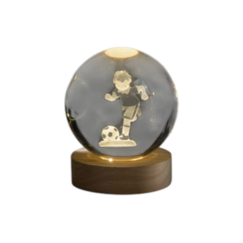 Sfera con led luminoso ddella collezione Mandorle di Paben, realizzato in vetro e legno.