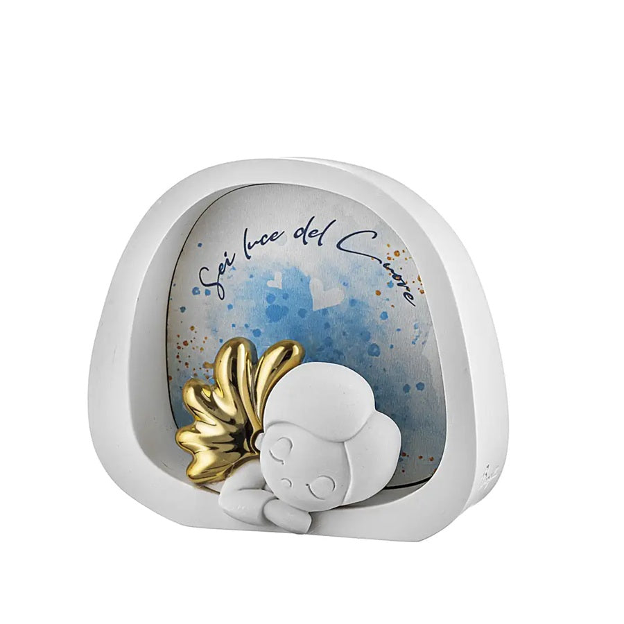 Lampada Led della collezione di Bongelli Preziosi, realizzato in marmorino, con piedini oro e con scritta "Sei Luce nel Cuore".