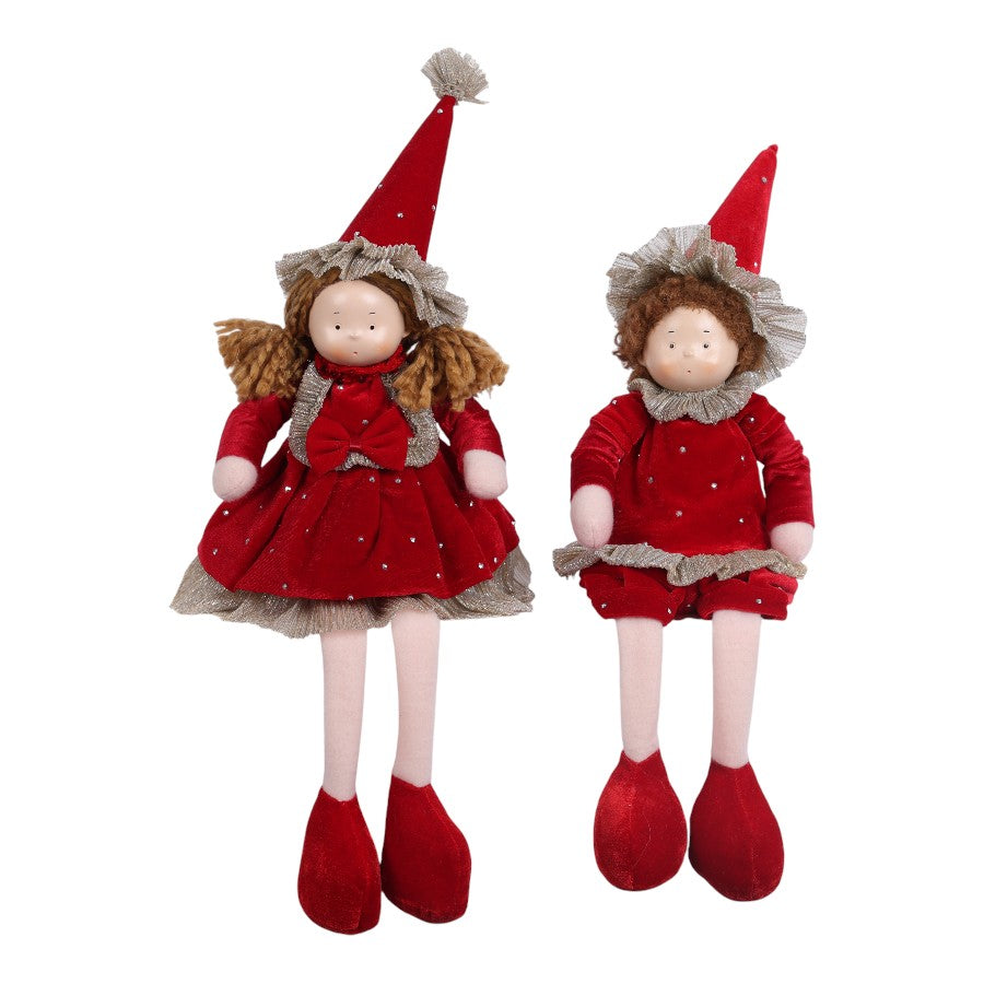 Coppia Bimbi in Velluto Rosso Fiori di Lena h.46 cm.
