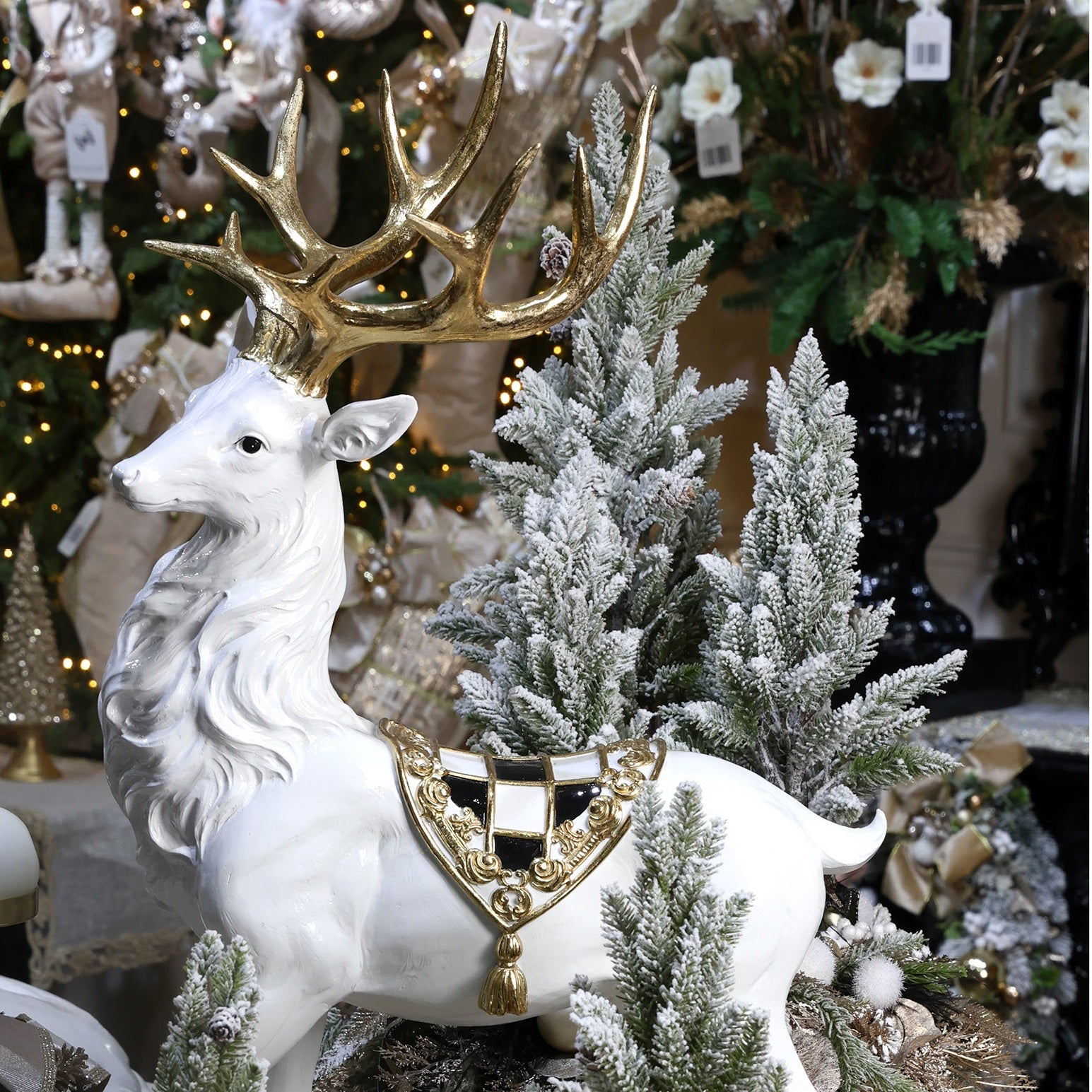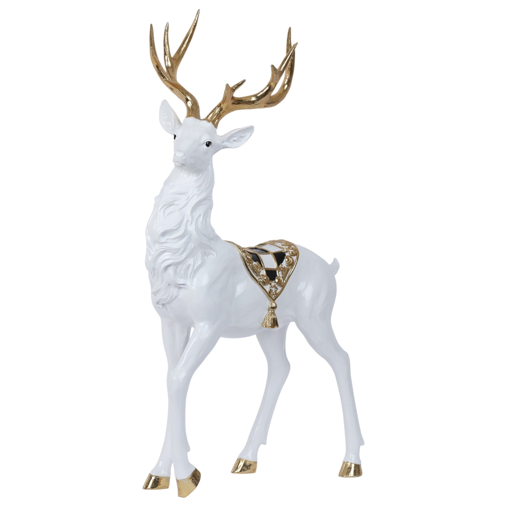 Decoro Renna della collezione Sofisticata Bellezza di Fiori di Lena, realizzata in resina bianca con dettagli oro.