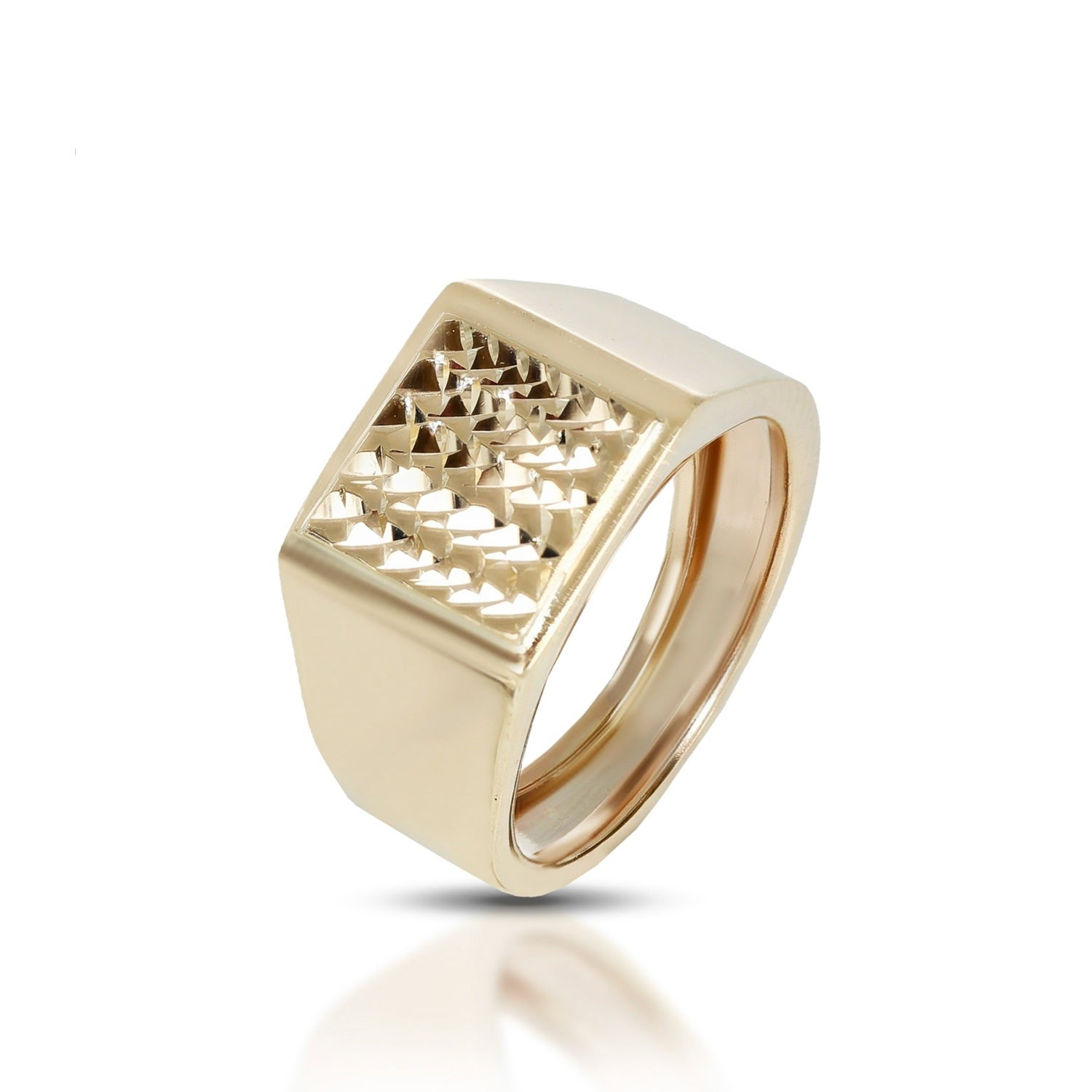 Anello della collezione di Dana L’Or 9 Carati, realizzato in Oro Giallo 9 kt., con scudo frontale lavorato.