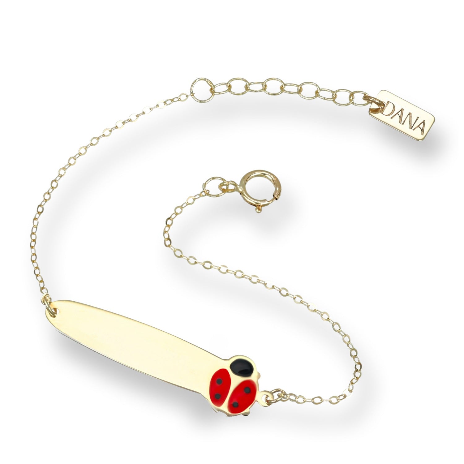 Bracciale della collezione di Dana L’Or 9 Carati, realizzato in Oro Giallo 9 kt., con coccinella smaltata.